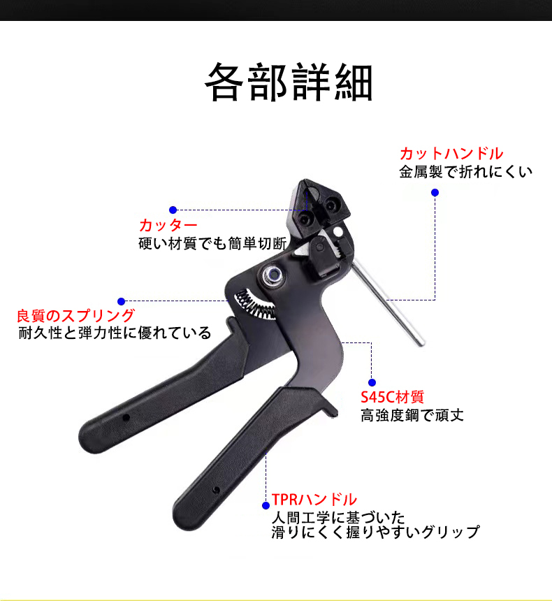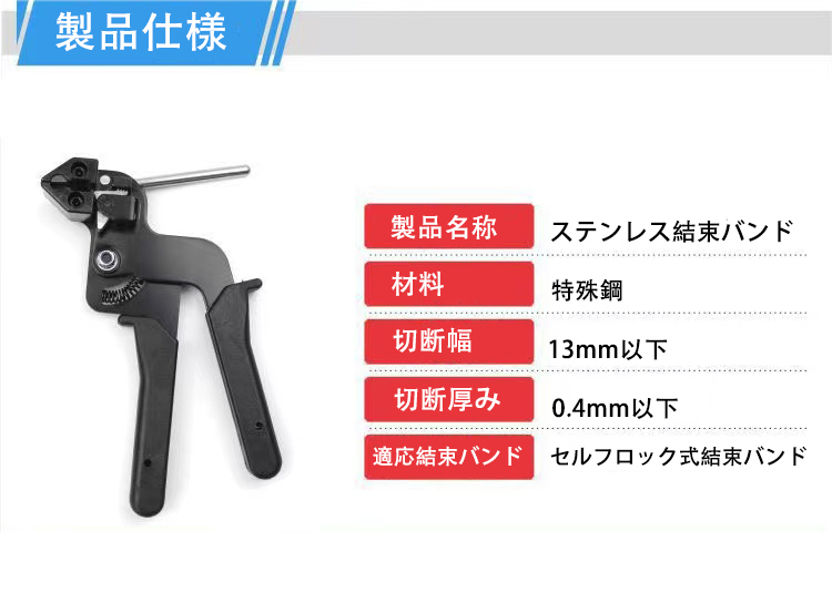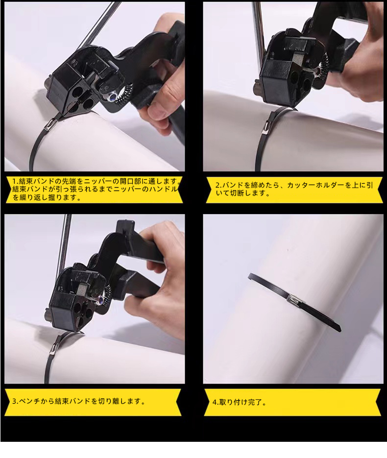 (A) 結束バンド ケーブル タイガン ステンレス 締め付け 切断 結束工具 片手操作 対応 配線 修理 メタルタイ