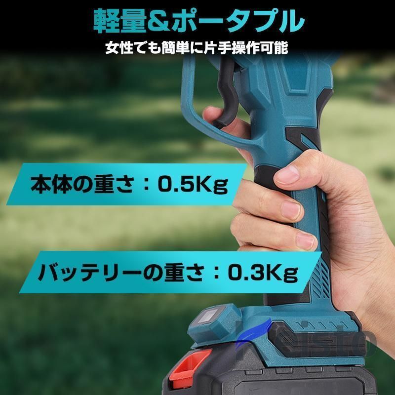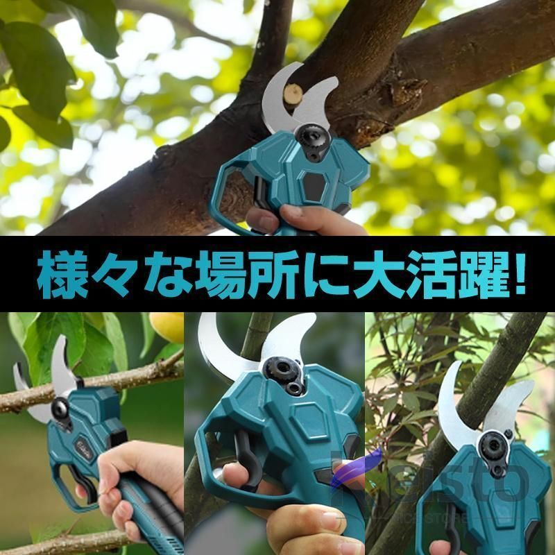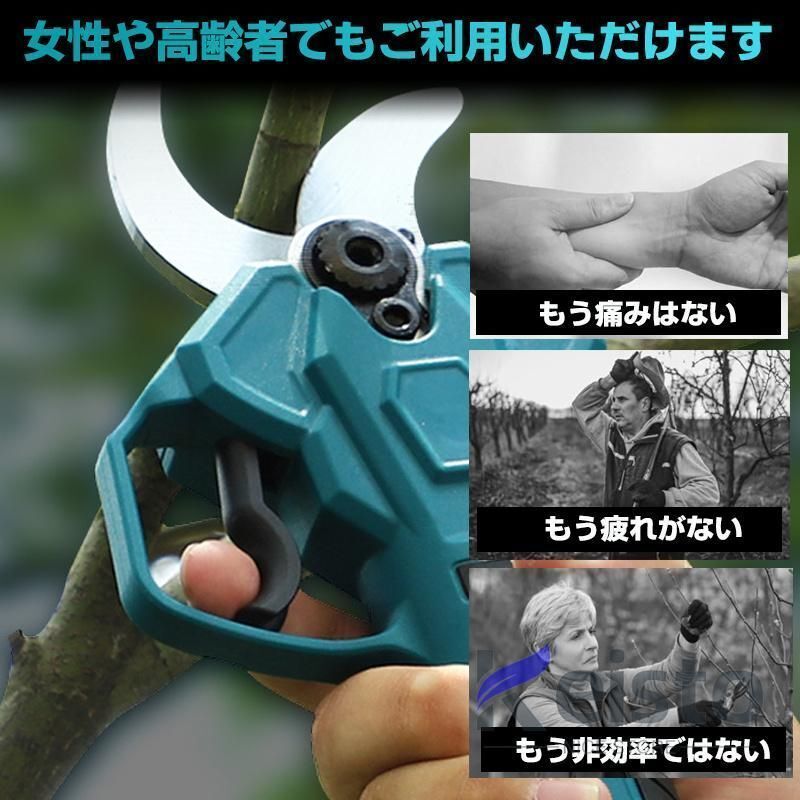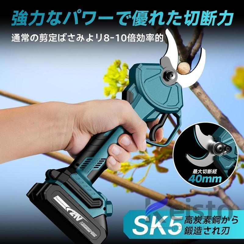 【高枝切りの延長ポールと接続可能】改善点?旧の商品に比べ、ナイフサイズ40mmになり、最大の切断経40mmに達します。強力なパワーを備えており、損傷することなく直径40mm以内の木を簡単に切断できます。電動剪定ばさみは、従来の手動剪定よりも10倍効率的に機能します。