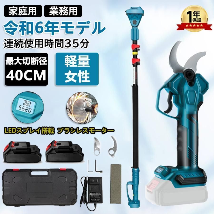 電動剪定バサミ 剪定はさみ 一台2役 切断直径40mm 4段階開き角度調整可能 軽量 伸縮ポール最長2.5m マキタ バッテリー互換 軽量 電動枝切り