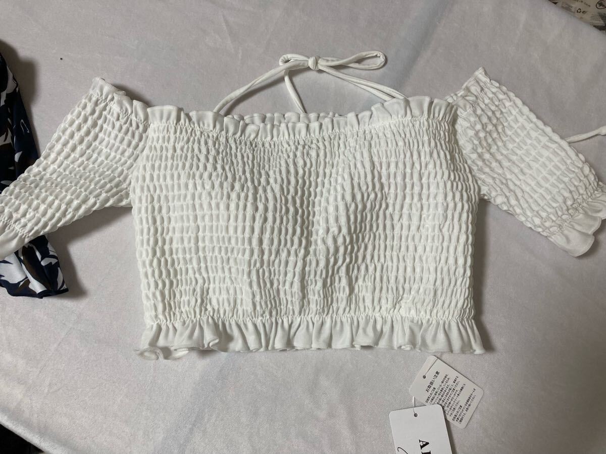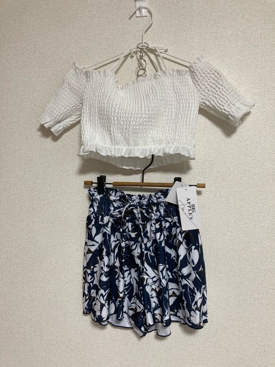 新品未使用シャーリング オフショルキュロパン付き 水着 スイムウェア 3点セット