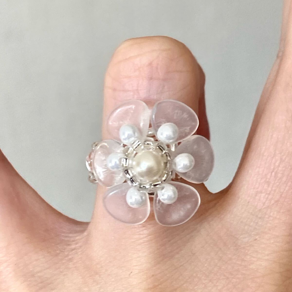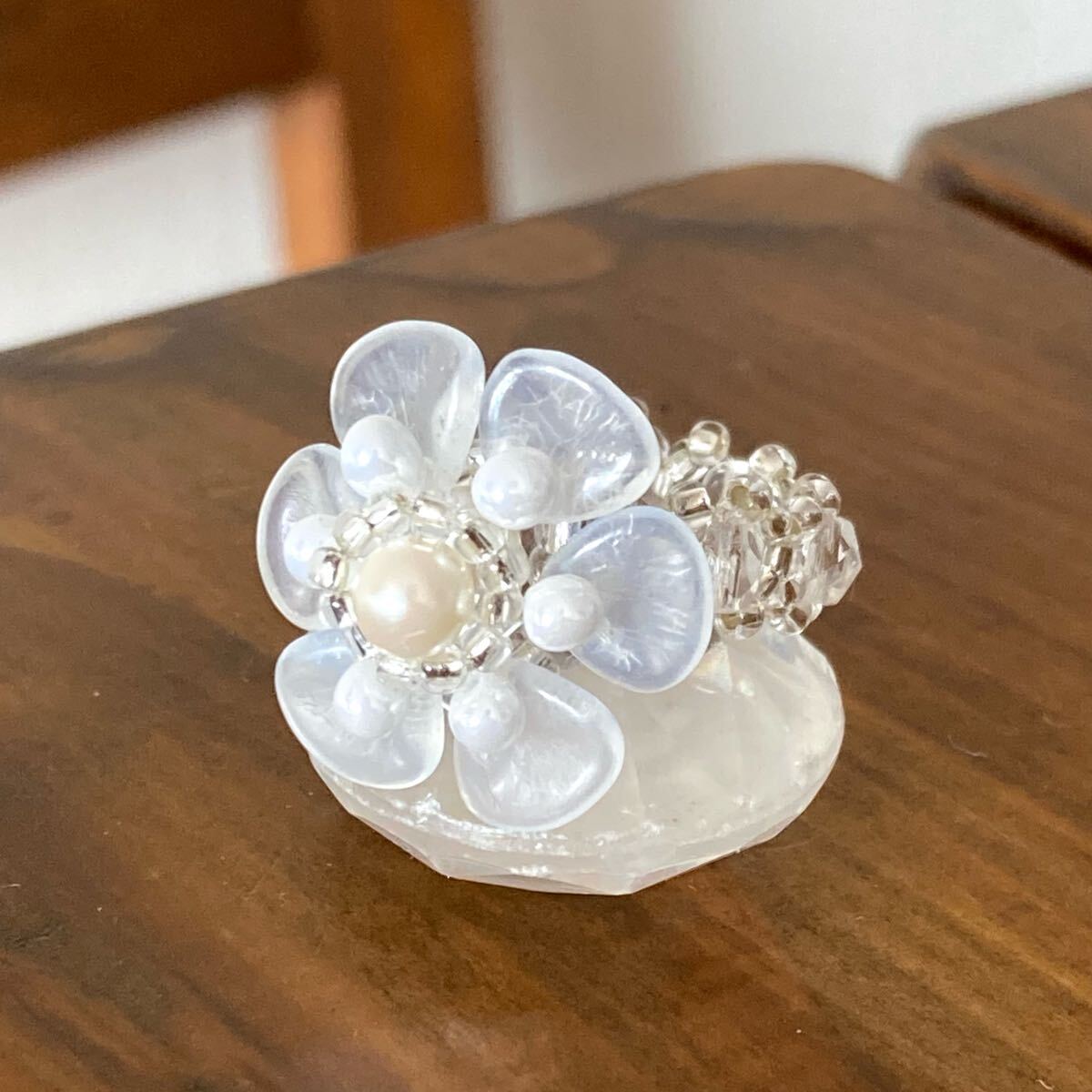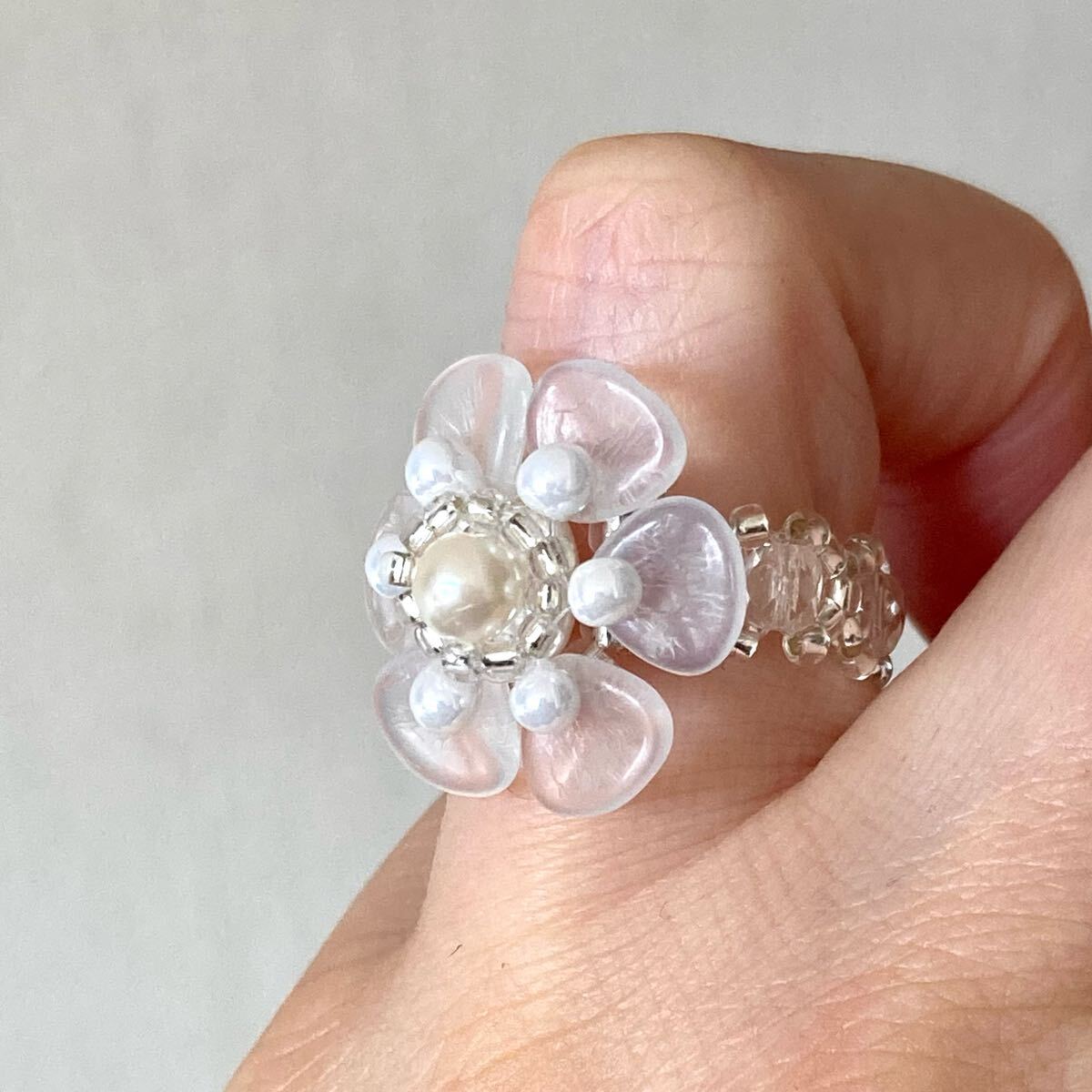 フロストホワイトの花びらビーズが可愛いお花風のリングです♪