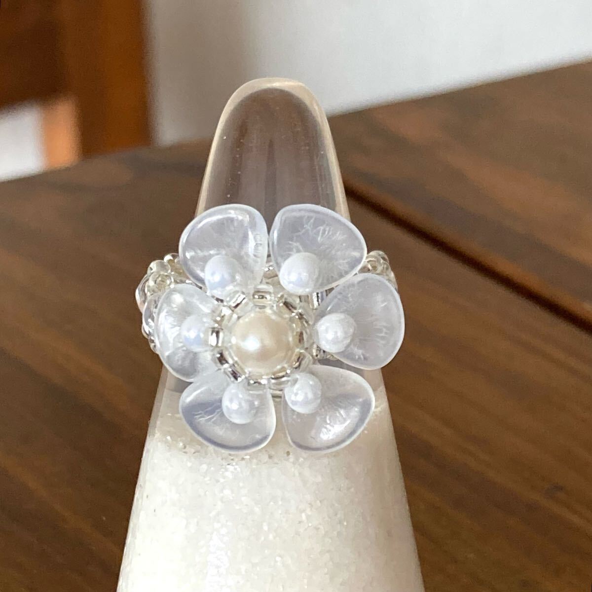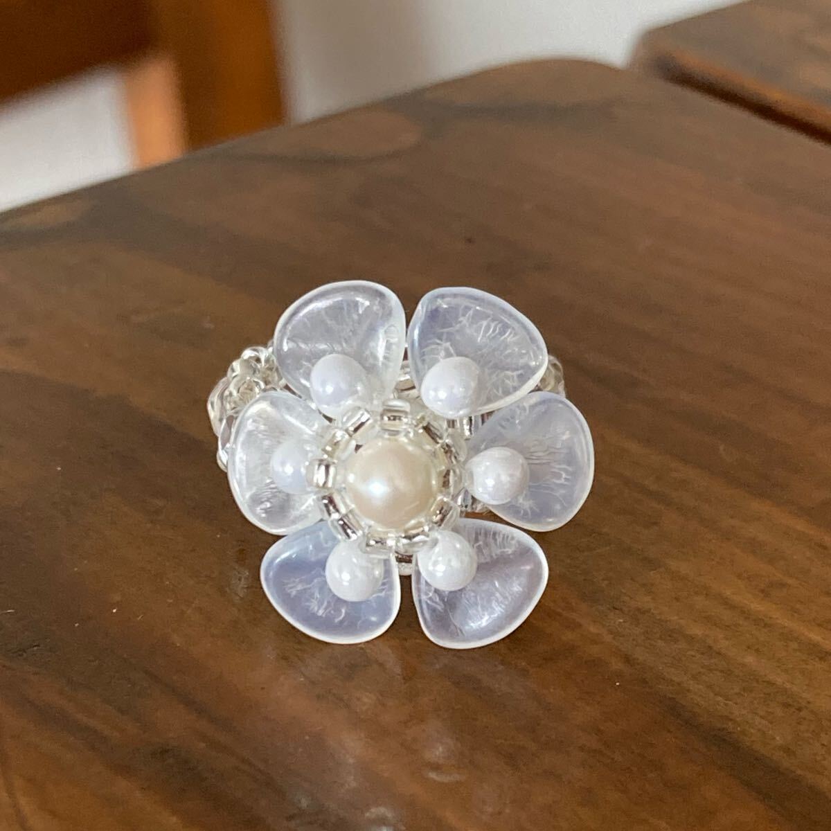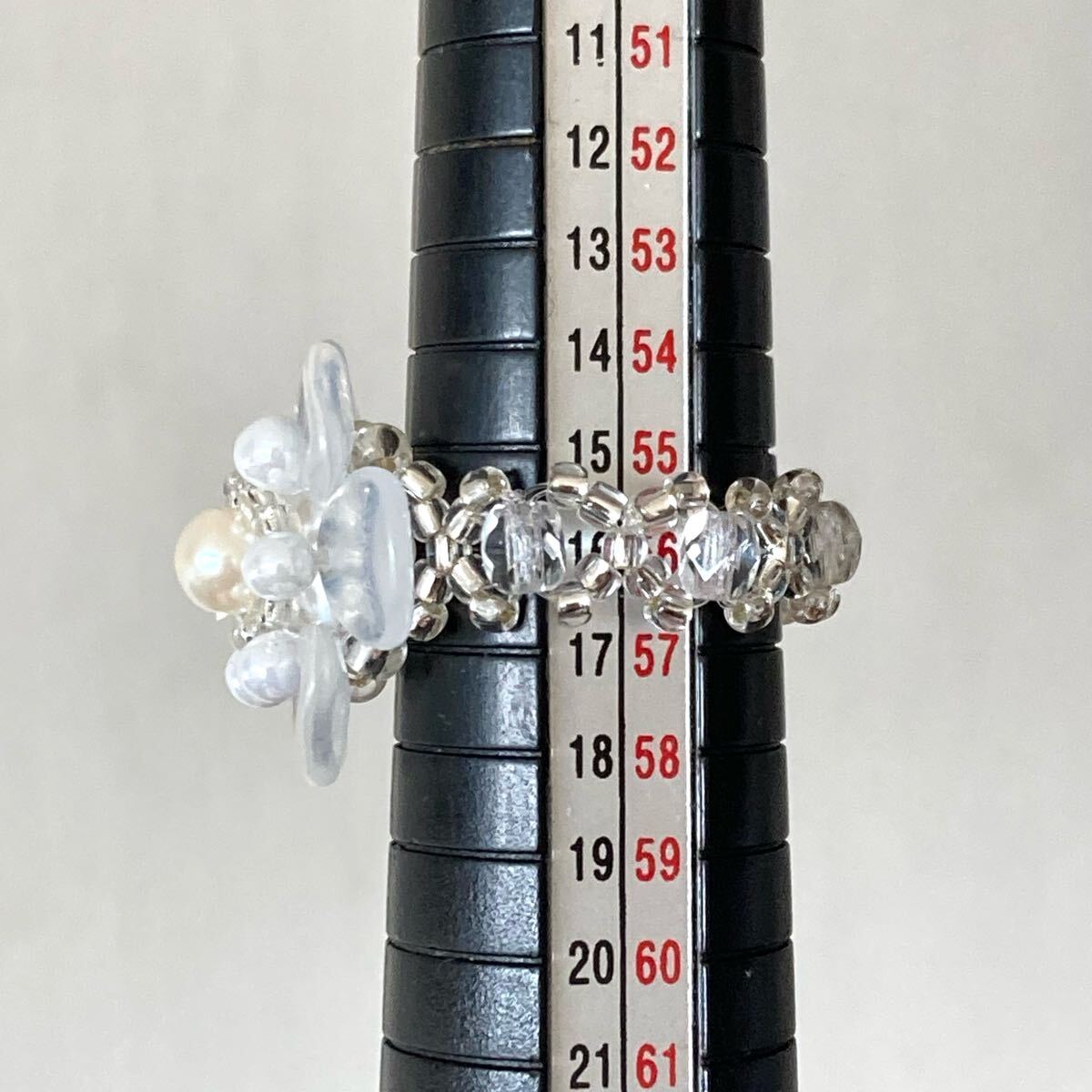 ビーズ  リング  指輪  ハンドメイド 花びらビーズのお花風リング フロストホワイト 15-17号です。