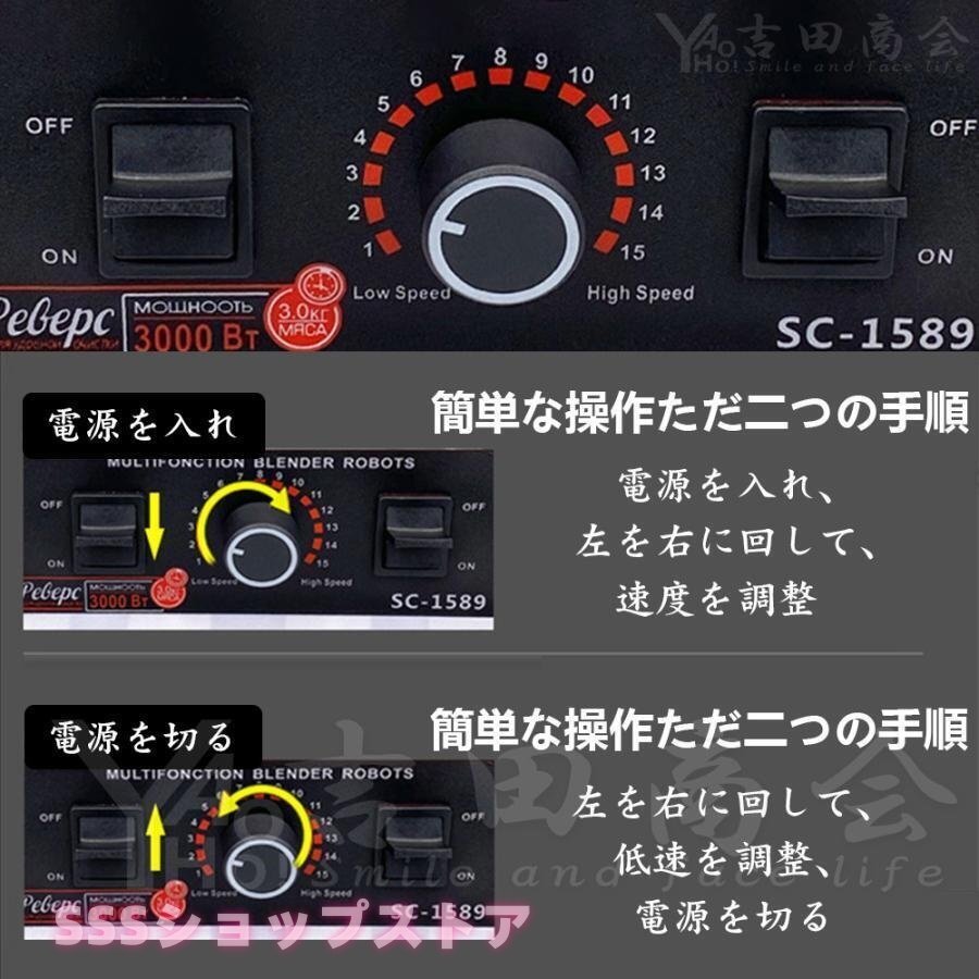 「混ぜる」「つぶす」「刻む」「挽く」「砕く」「撹拌する」の6つの機能をあります。ジューサー、ミックスジュース、スムージー、スープ、味噌、離乳食など、あらゆるものを作ることができるし、にんにくのみじん切りや大根おろしや肉のミンチもあっという間に完成できます。大 豆や氷、ナッツなど、乾燥して硬い食品も難なく砕くこともできます。ご家庭から業務キチンまで幅広いニーズに対応でき、喫茶店、ホテル、レストラン、料理店、カフェー、バーなど、様々な場面で大活躍です!【可変速ミキサー機能付き】