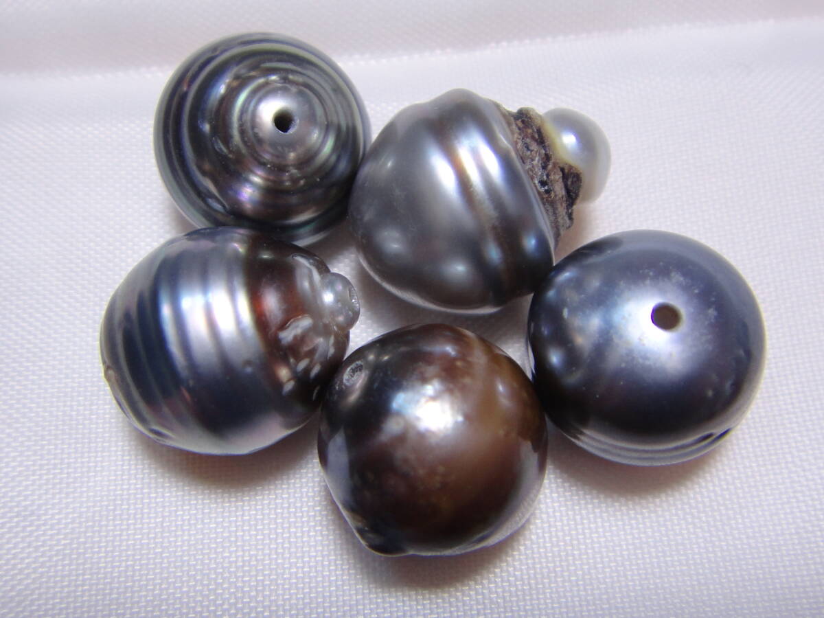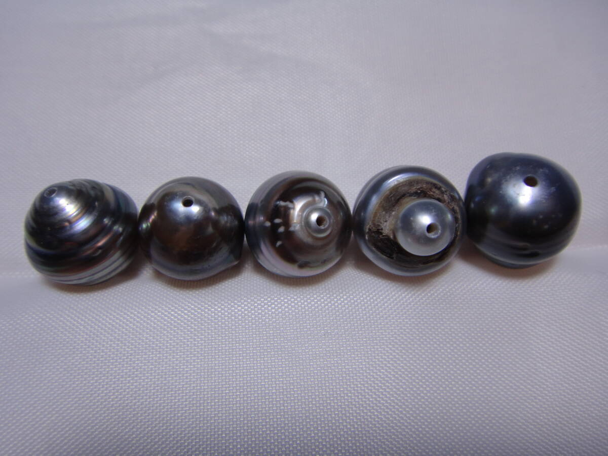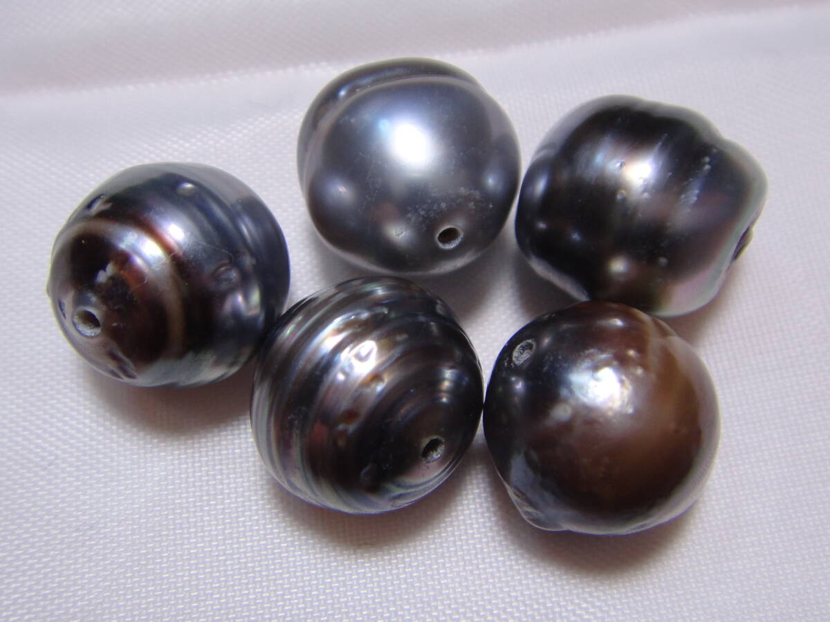 黒蝶真珠 約10~11㎜玉 5個セット まとめて! 通し穴あり ハンドメイド素材・アクセサリー作り等に ヴィンテージ D256