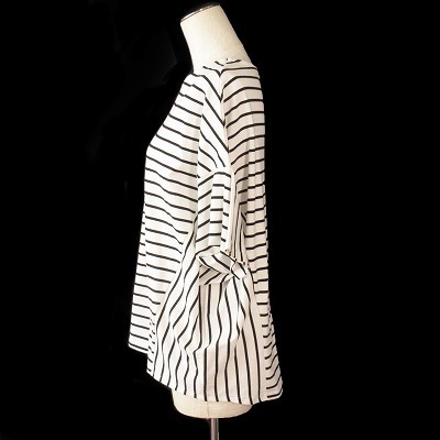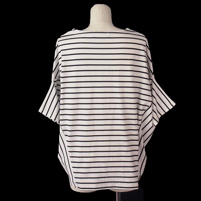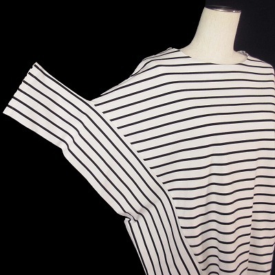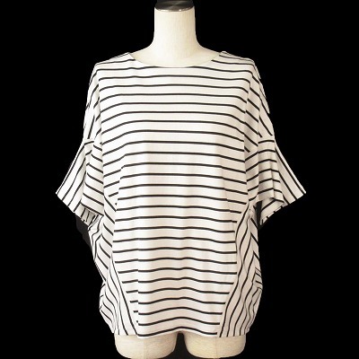 ドゥクラッセ DoCLASSE 変則フォルム ボーダーTシャツ カットソー コットン L ホワイト ブラック 白黒 レディース