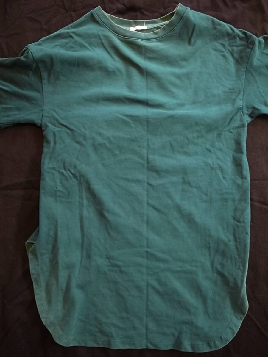 首回り、袖、裾周りの各端部に色褪せがあります。(写真参照)