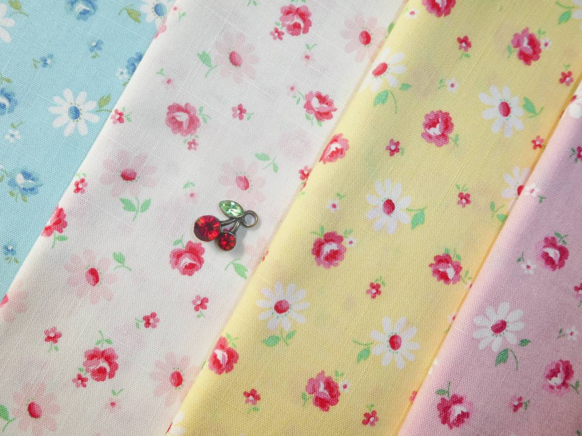 ご覧いただきありがとうございます。 松山敦子さんデザインのレアなローズマーガレット柄生地、 約27×25㎝の4色セットです。(布端含む) チェリーのチャームは、約1.5㎝で含まれません。 ずいぶん以前に発売された松山敦子さんデザインのレアで素敵な生地です。 個人保管、素人裁断をご理解ください。 どうぞよろしくお願いします。 | ||
