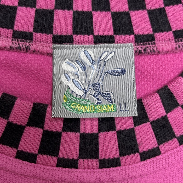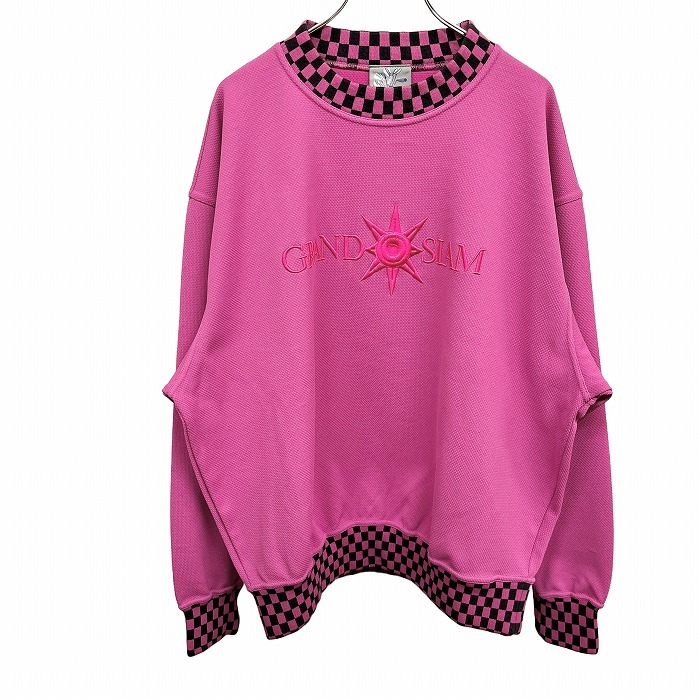 | 商品タイトル | マンシングウェア グランドスラム ゴルフ 鹿の子カットソー 刺繍 英字 太陽 チェッカー 長袖 ポリ100% LL XL ピンク ピンク×黒 メンズ |
