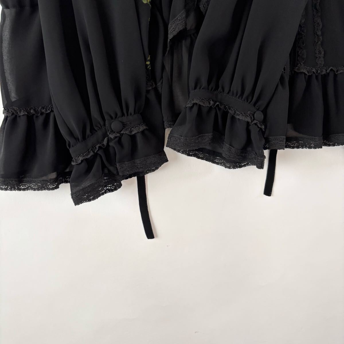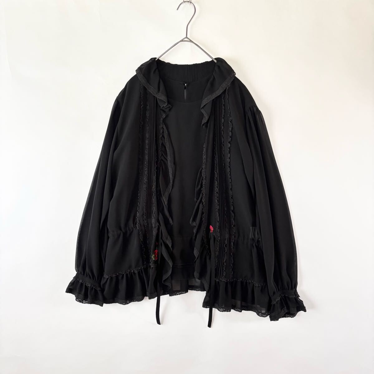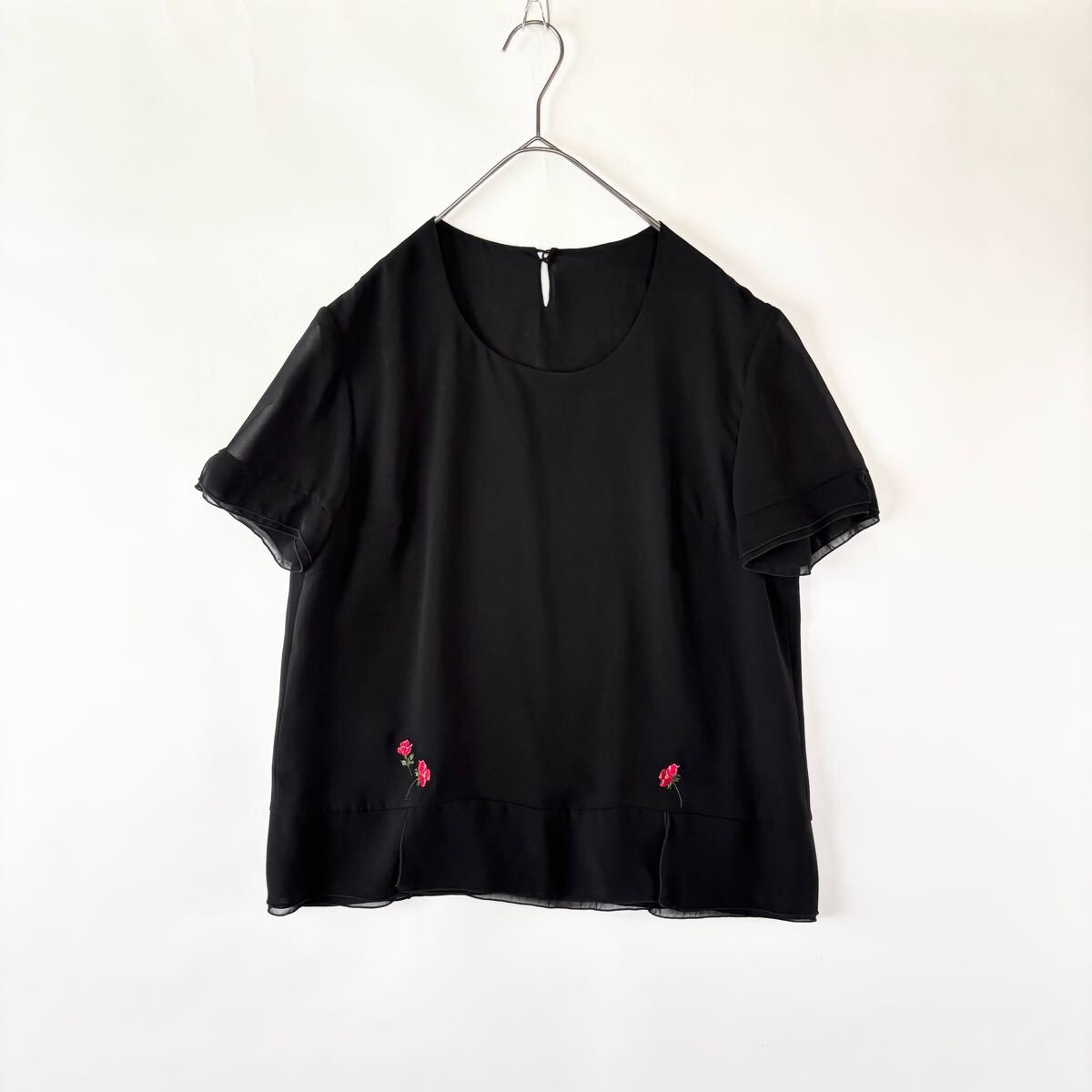 INGEBORG 日本製 インゲボルグ レース フリル オーバーブラウス ショートスリーブ ブラウス セット 花刺繍 ブラック size FREE/ M