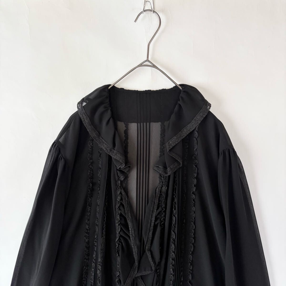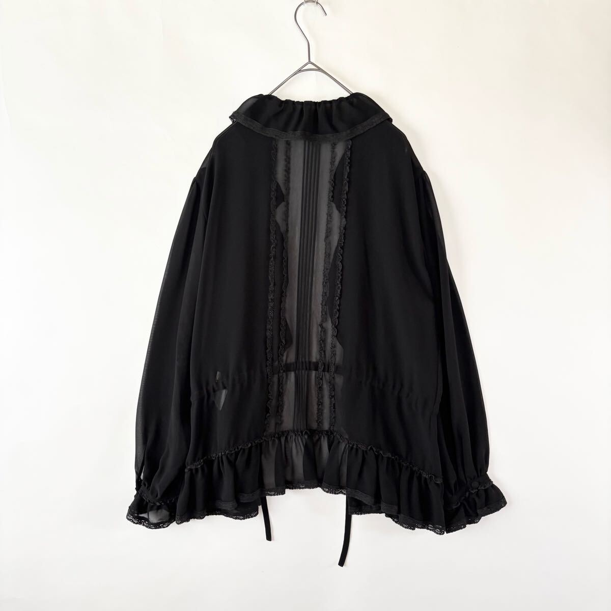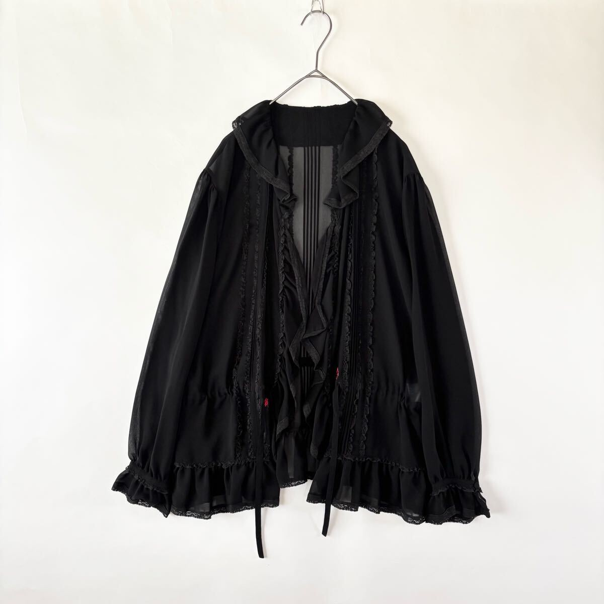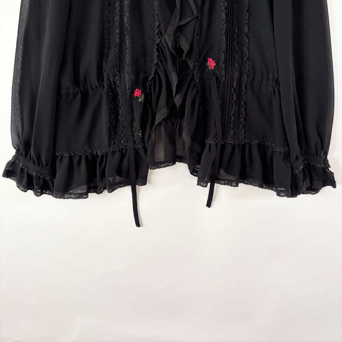 INGEBORG 日本製 インゲボルグ レース フリル オーバーブラウス ショートスリーブ ブラウス セット 花刺繍 ブラック size FREE/ M