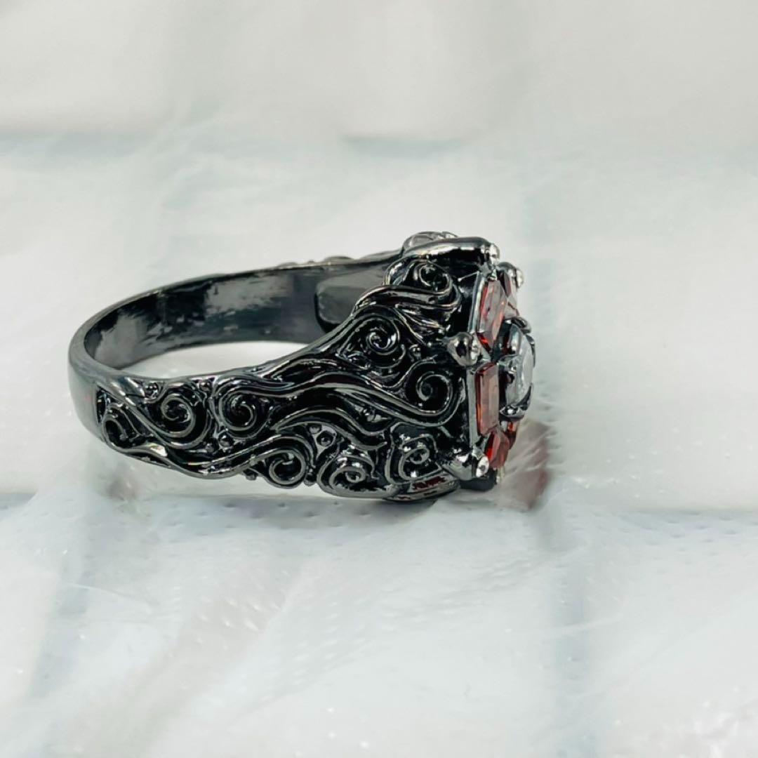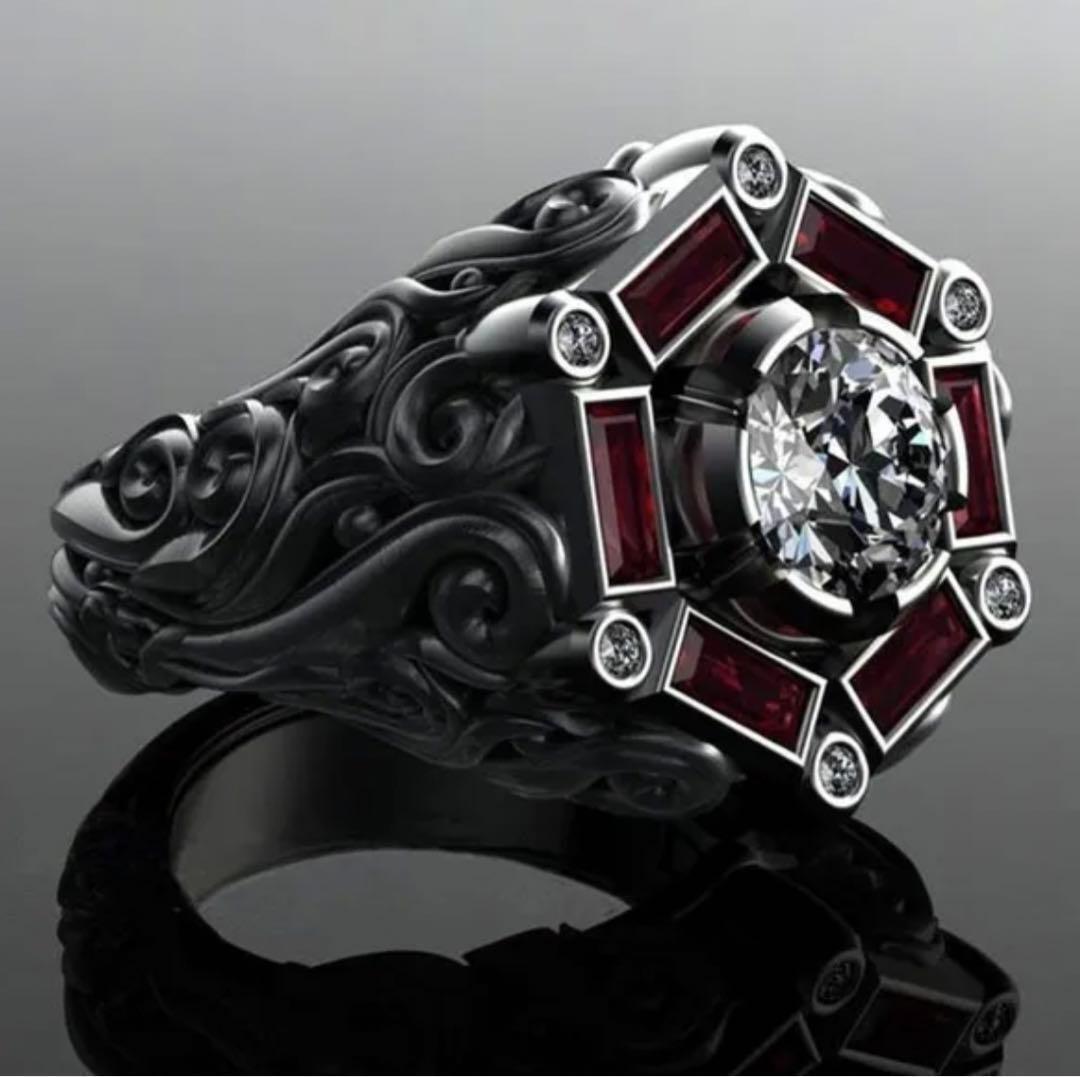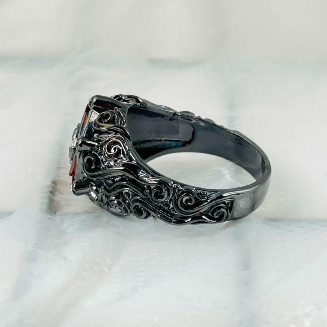 482-9-BK 指輪 リング ブラック クリスタル ゴツい かっこいい ヴィンテージ 18号 メンズ ギフト バイカー ロック パンク