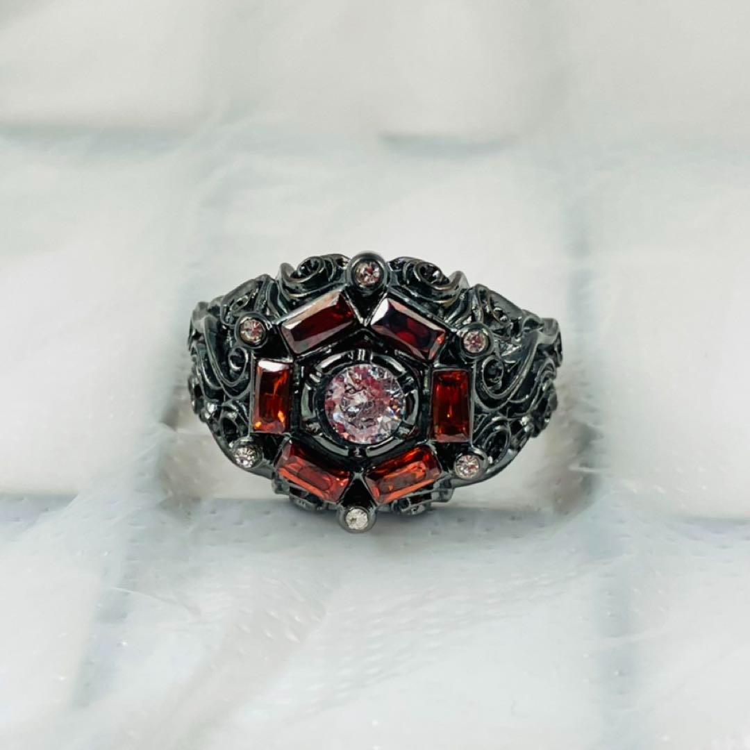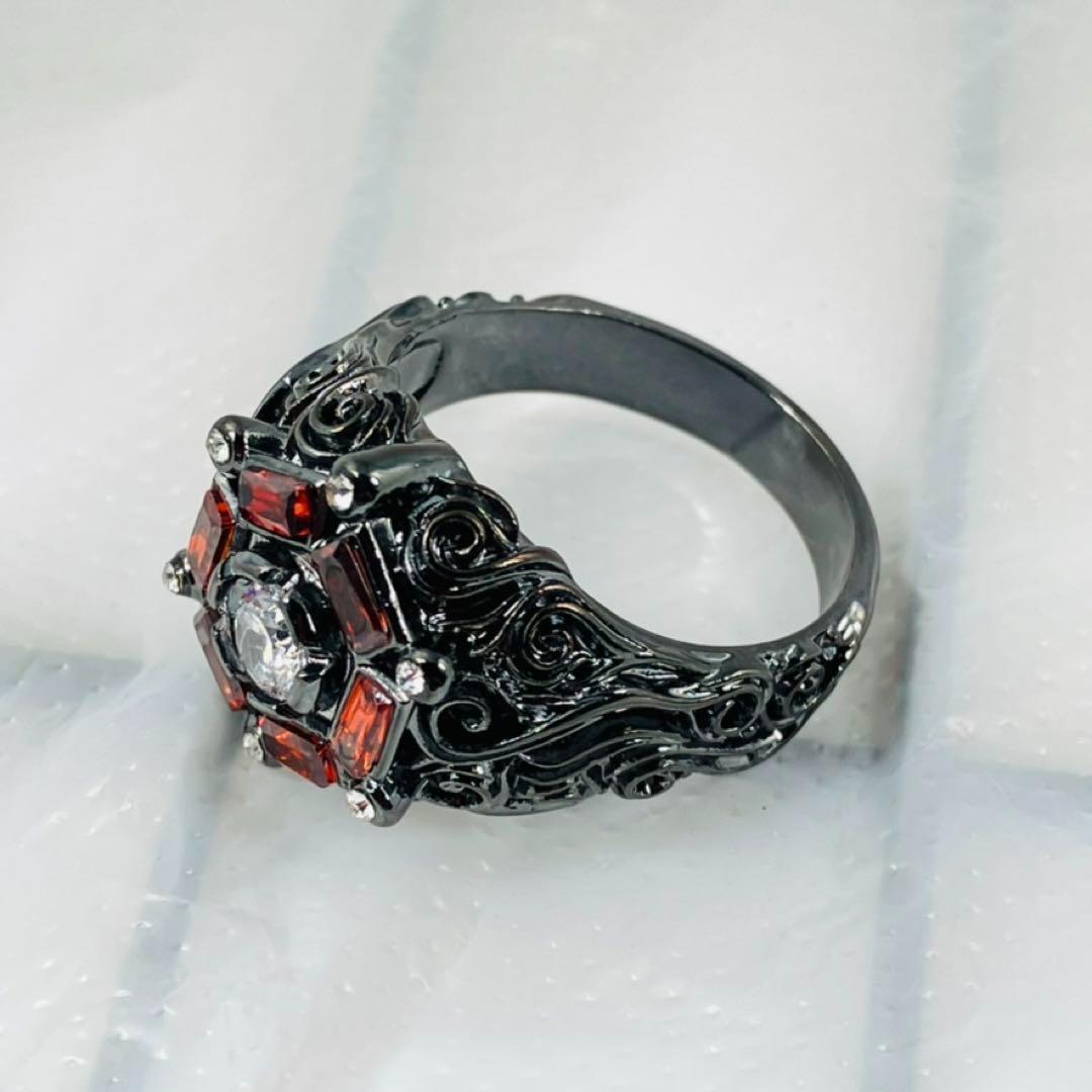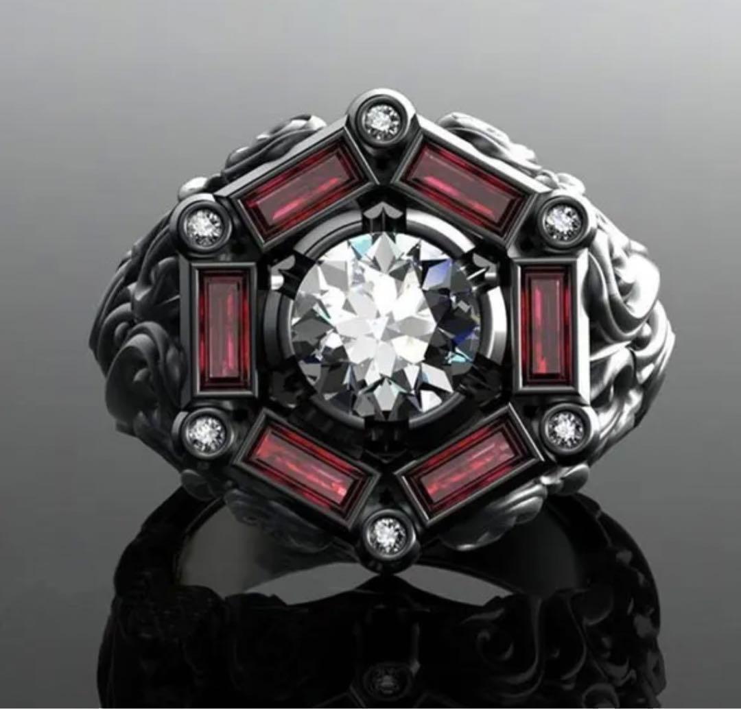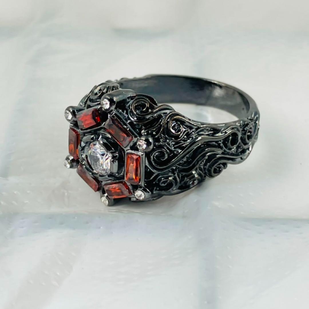 482-9-BK 指輪 リング ブラック クリスタル ゴツい かっこいい ヴィンテージ 18号 メンズ ギフト バイカー ロック パンク