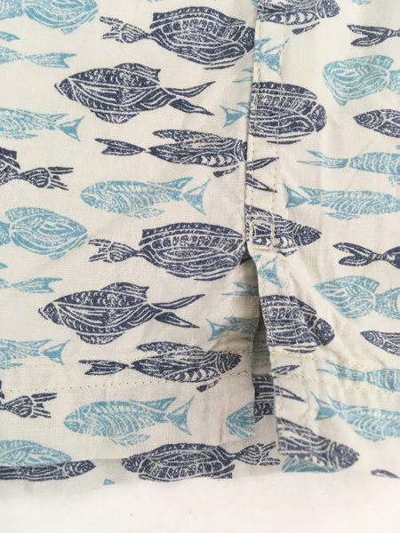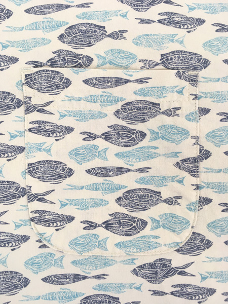ハリのある100%コットン素材・襟芯なし・トップボタン ループ留の開襟。
