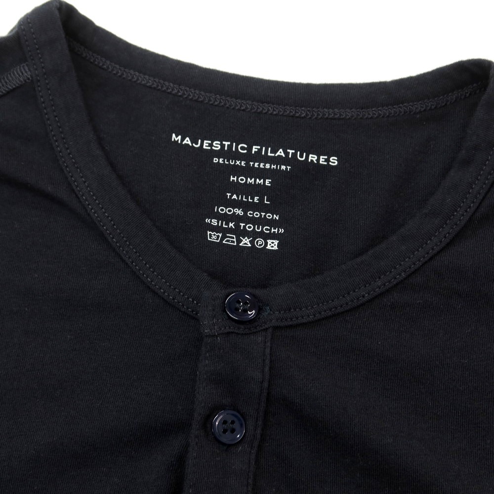 【新品】マジェスティック フィラチュール オム MAJESTIC FILATURES HOMME コットン ヘンリーネック 半袖Tシャツ ネイビー【サイズL】