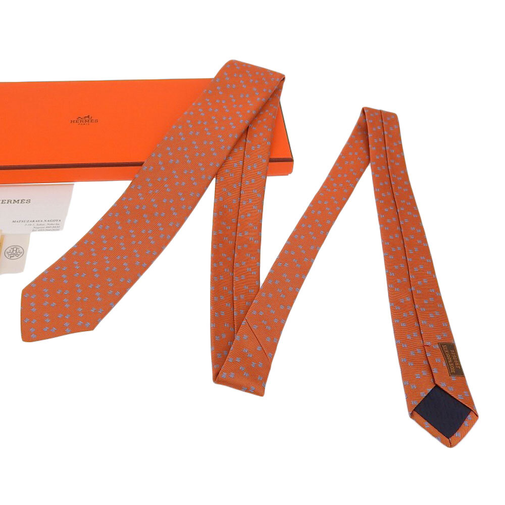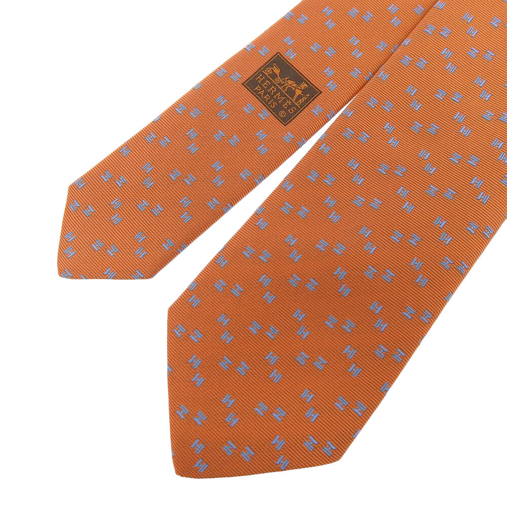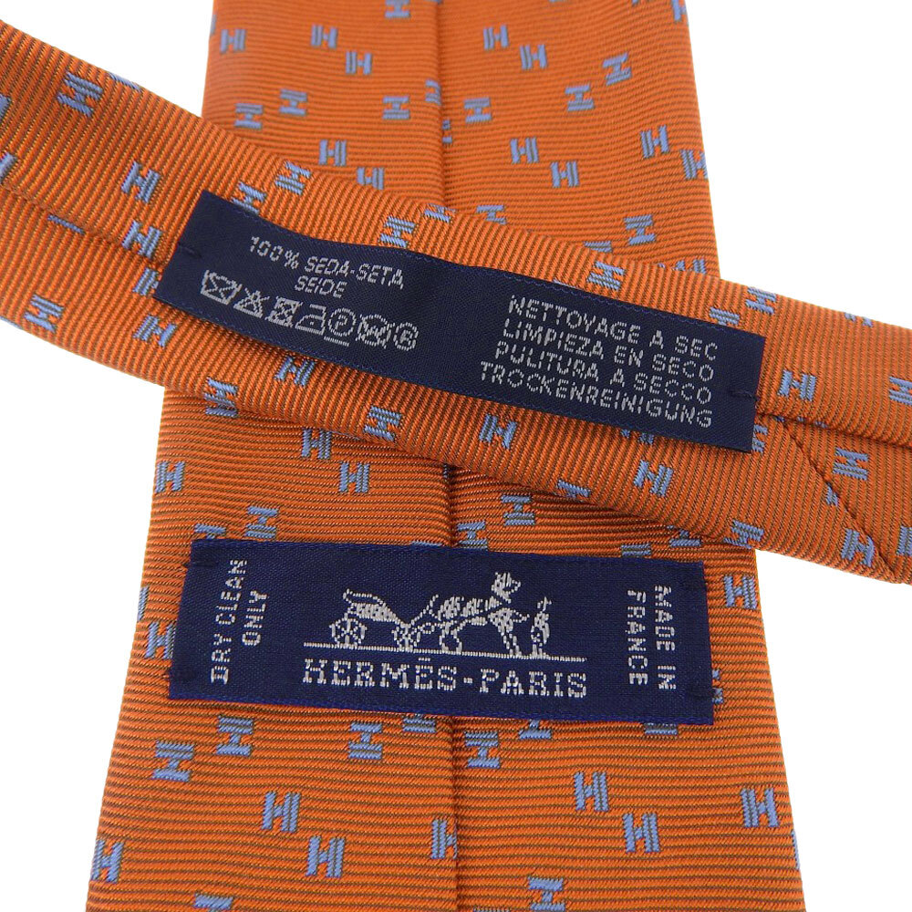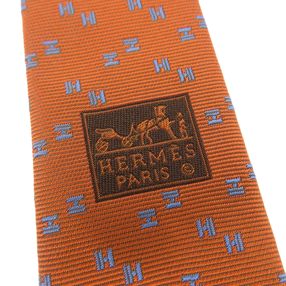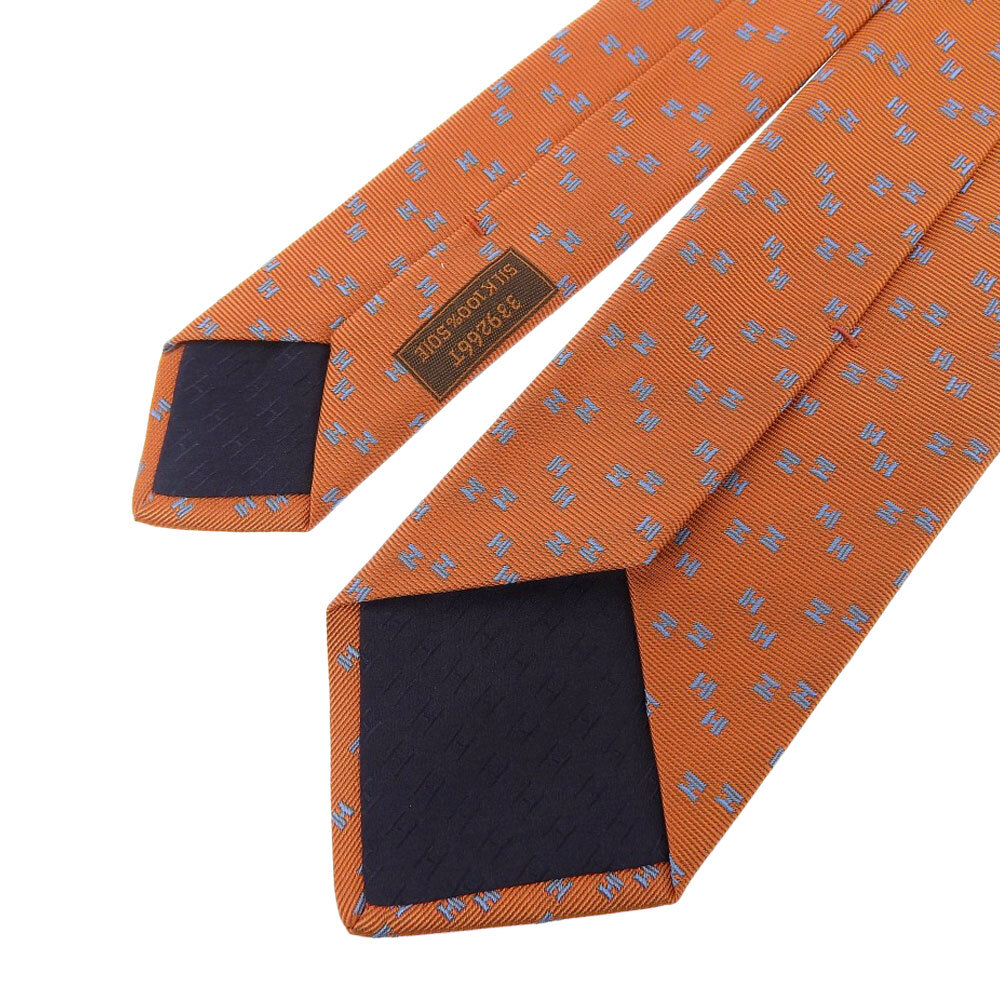 | 箱付未使用 エルメス HERMES 2023年商品 銀糸H織り デジタルH クラヴァット ヘビーツイル シルク ネクタイ エルメスオレンジ |