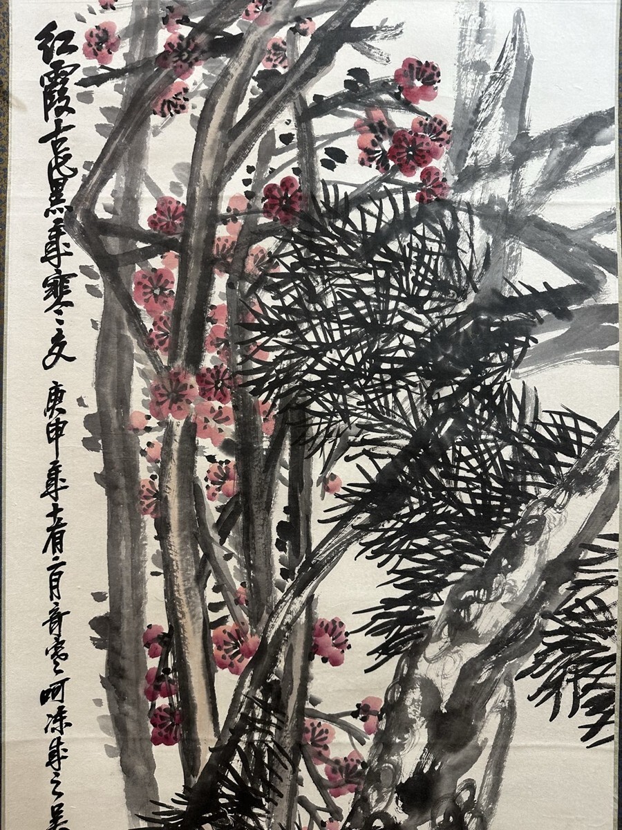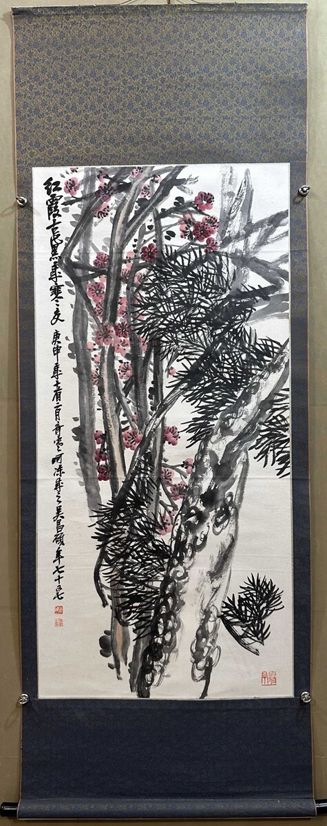中国書画「清 呉昌碩 花卉図」肉筆紙本 掛け軸 墨寶妙品 書画立軸 巻き物 古美術 旧蔵出