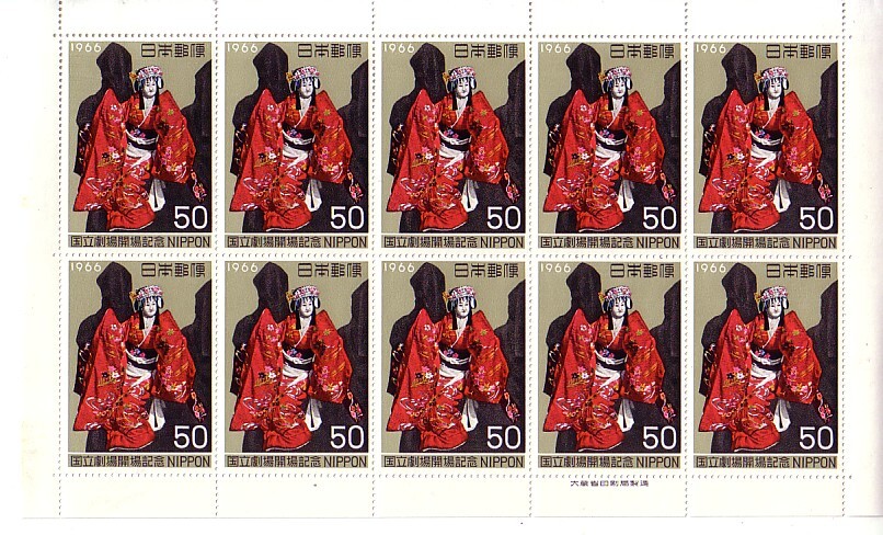 「国立劇場開場記念」の記念切手です(50円切手X10枚)。送料は普通140円(普通便 複数同梱発送では180円)になります。