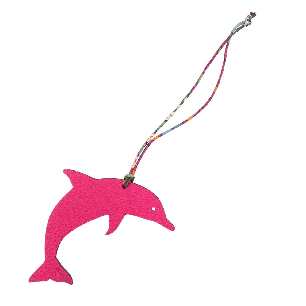 新品同様 エルメス プティアッシュ ドルフィン イルカ ヴォーエプソン ブラウン ピンク バッグチャーム 0816 HERMES