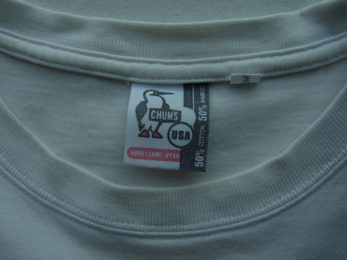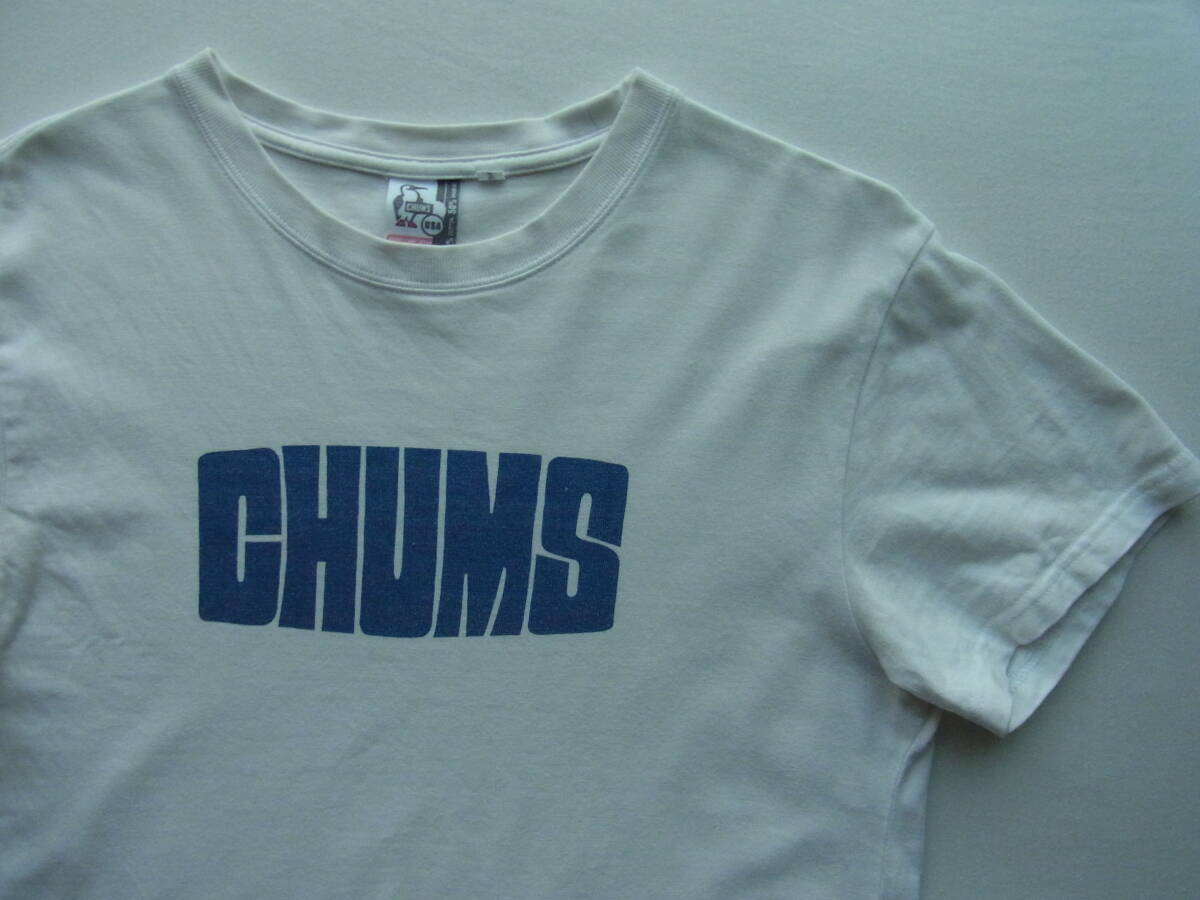 CHUMS チャムス ロゴプリント入りTシャツ サイズ S オフホワイト系  衿リブにスレ有り