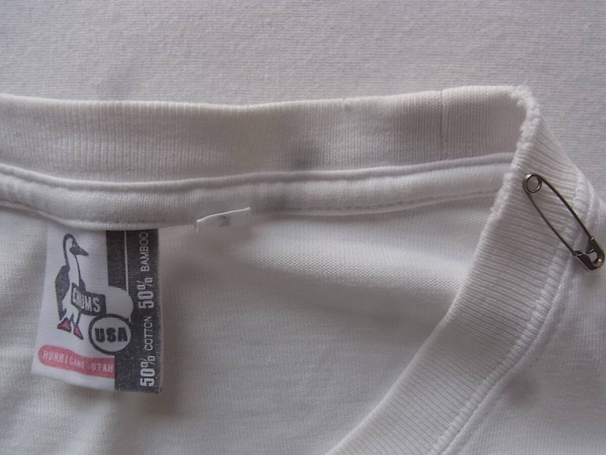チャムスのロゴプリント入りのTシャツになります。USEDで着用感と、衿リブに6~7枚目の画像の様なスレによるダメージが御座います。それ以外には特に目立ったダメージ等は御座いません。