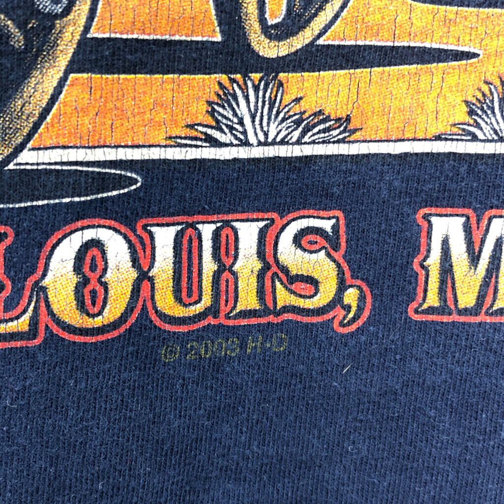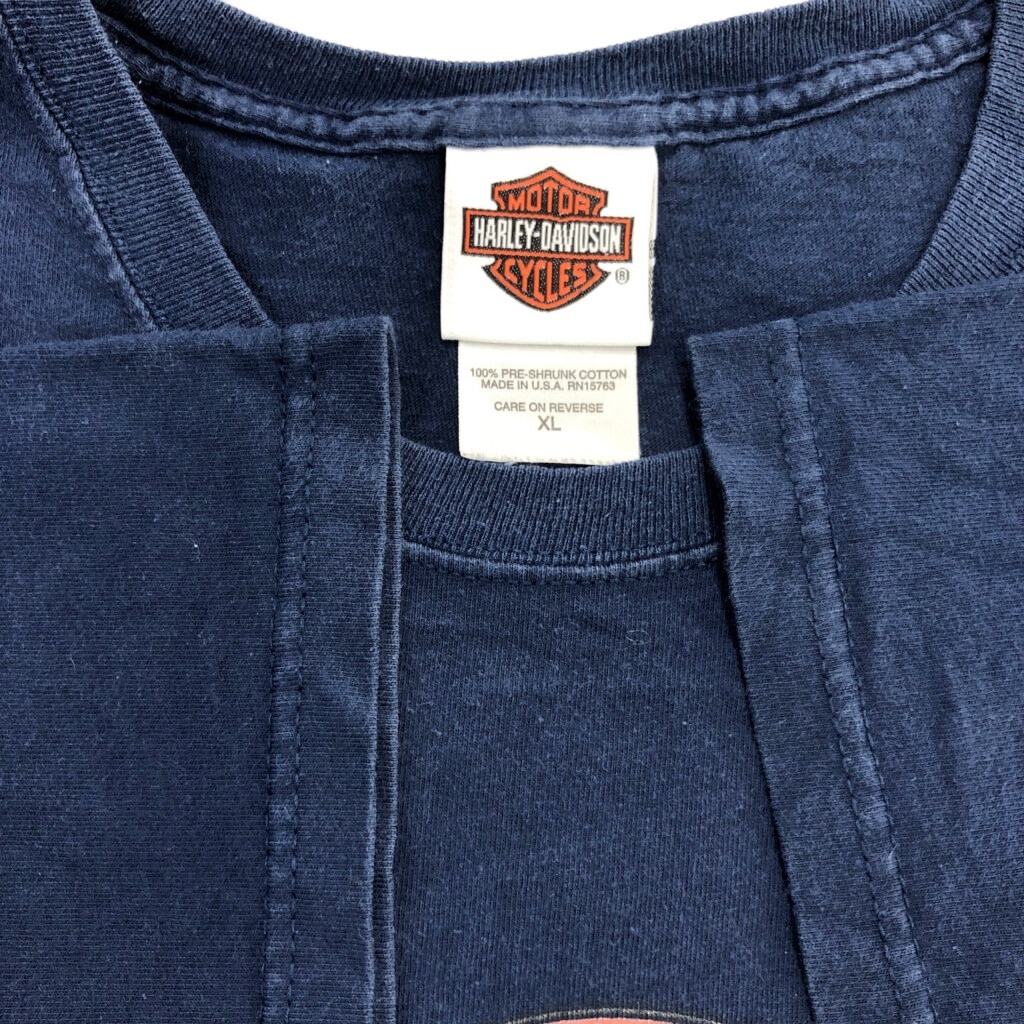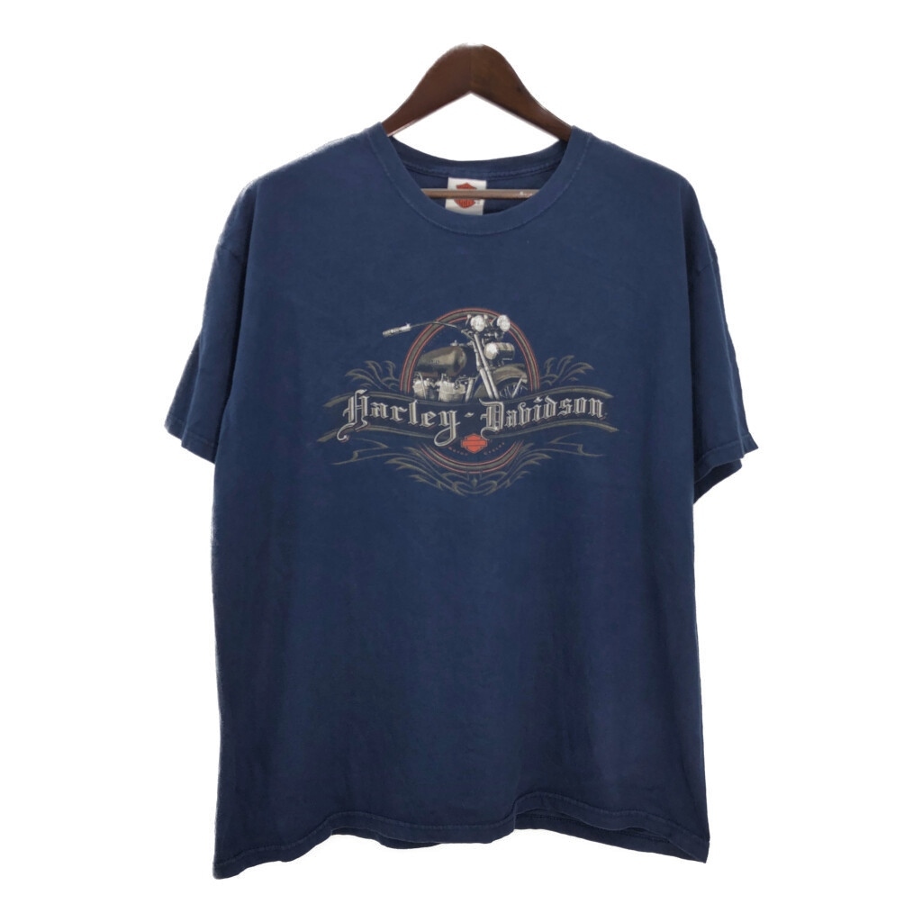 [商品管理番号] U0520 [ブランド] HARLEY DAVIDSON/ハーレーダビッドソン [サイズ] XL [実寸サイズ] 肩幅:約57cm 着丈:約69cm 身幅:約60cm 袖丈:約20cm [主な素材] 表地 : コットン [色] ネイビー [仕様] 生産国 : USA製 00年代 モーターサイクル [状態] 汚れ:背中、腰 特記事項:色褪せ、プリント劣化 | |||