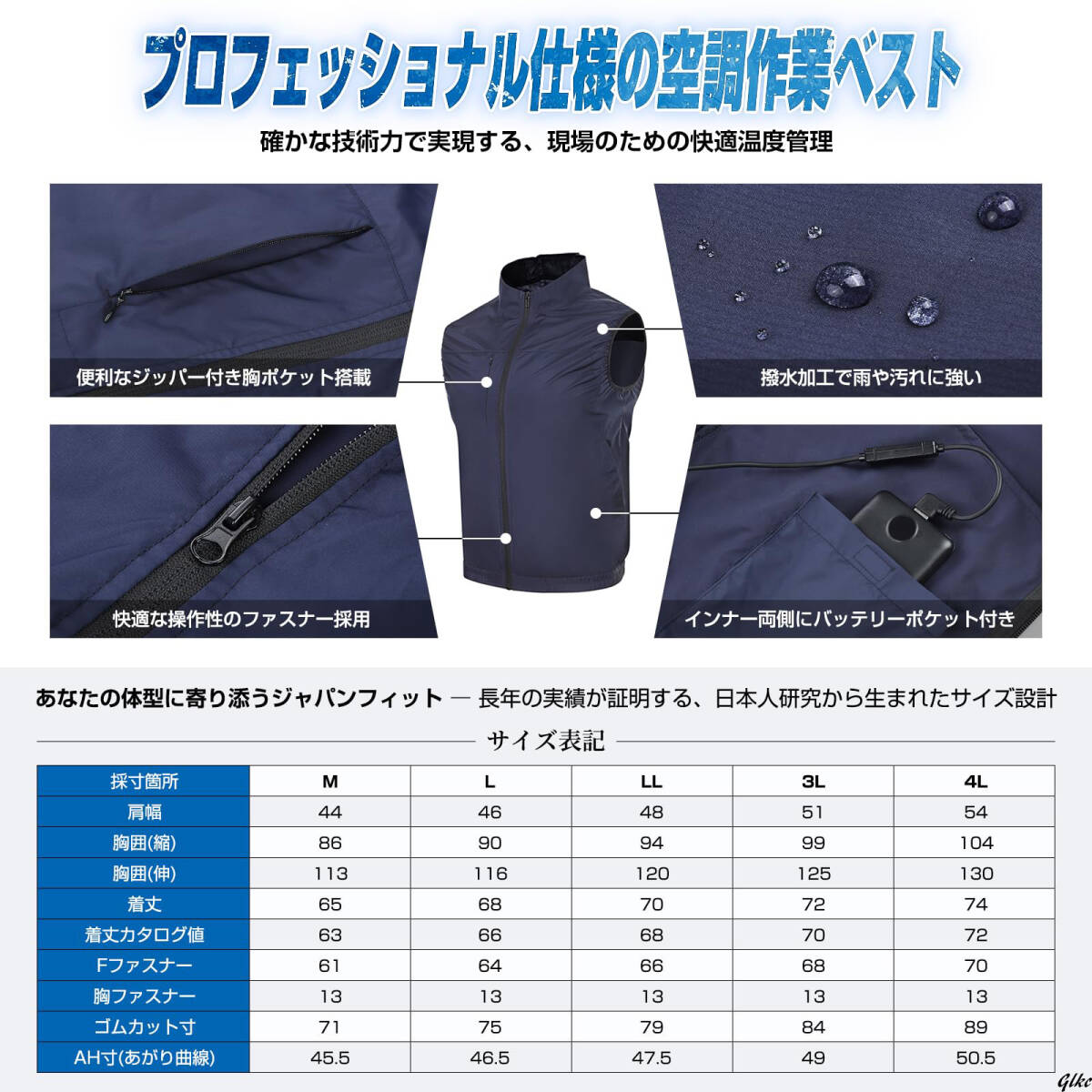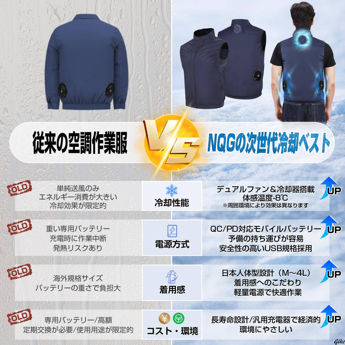 【2025年革新型デュアルファン冷却ベスト】 ネイビー M 冷却ベスト デュアルファン 熱中症対策 作業服 冷却ウェア 撥水加工