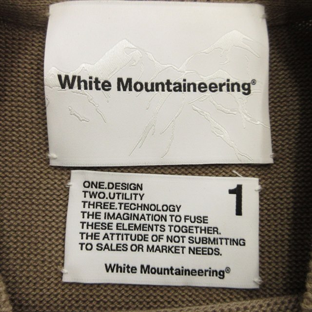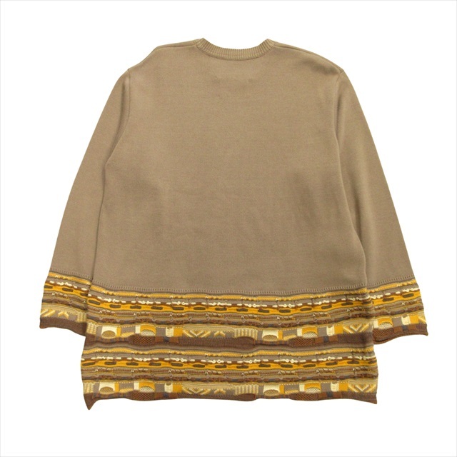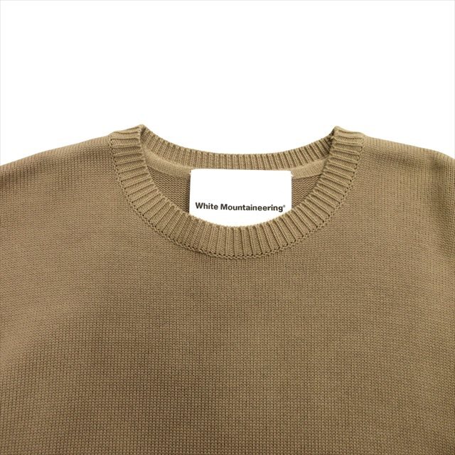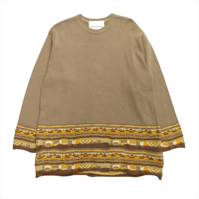 ホワイトマウンテニアリング White Mountaineering クルーネック ロング ニット セーター 総柄 切替 コットン サイズ1 ベージュ メンズ