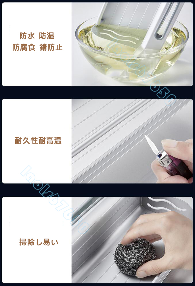 肥厚素材、穴あけ無しで取り付け、掃除し易い