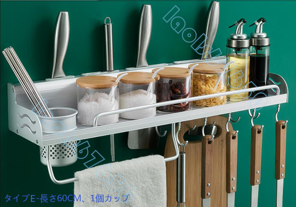キッチン棚 壁掛け式 穴あき必要無し 収納 ナイフホルダー 多機能 家庭用 箸 キッチン用品ラック 長さ60CM、1個カップ