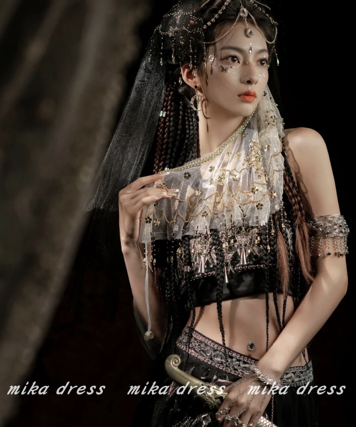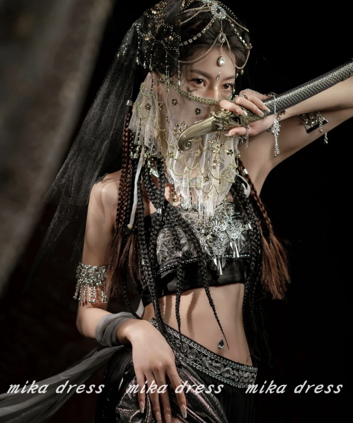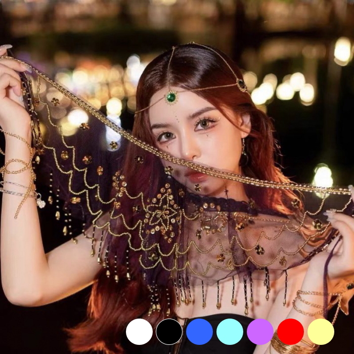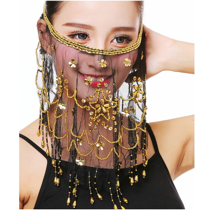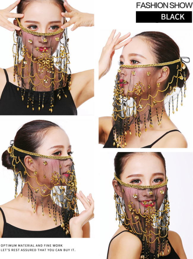 【ブラック】占い師 ナイトクラブ おしゃれ コスプレ ベリーダンス フェイスベールインド風 マスク 仮面マスク cy55n-pa