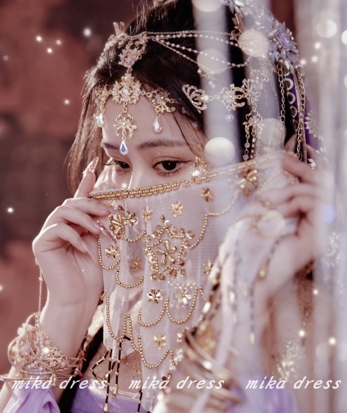 フェイスベールで、一気にミステリアスな雰囲気に。薄手の生地なので、口元がちょと透ける感じも素敵です。とても軽く、通気性の良く、ダンスにもぴったりなアクセサリー