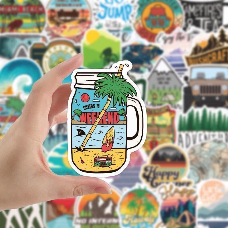 13番 アウトドア 大自然 ステッカー 50枚 スケボー キャンプ ストリート スケーター レトロ 雑貨 防水 シール スケートボード キャンプ