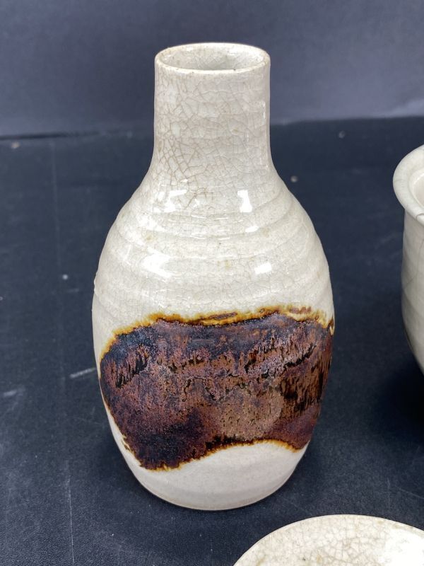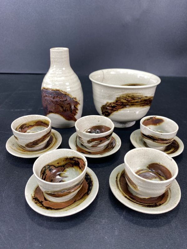 | 「もっと見る」へ画像追加★商品説明★ | 大きさ(約) 徳利 6.5xH11.5cm ぐい呑み 4.5xH3cm お皿 6.7xH1.2cm 10.5xH7.5cm 共箱 15.5x24.5xH10cm 経年による細かな小傷等ございますが、総じて良好な状態です。 | ||||||||||||||||||||||||||||