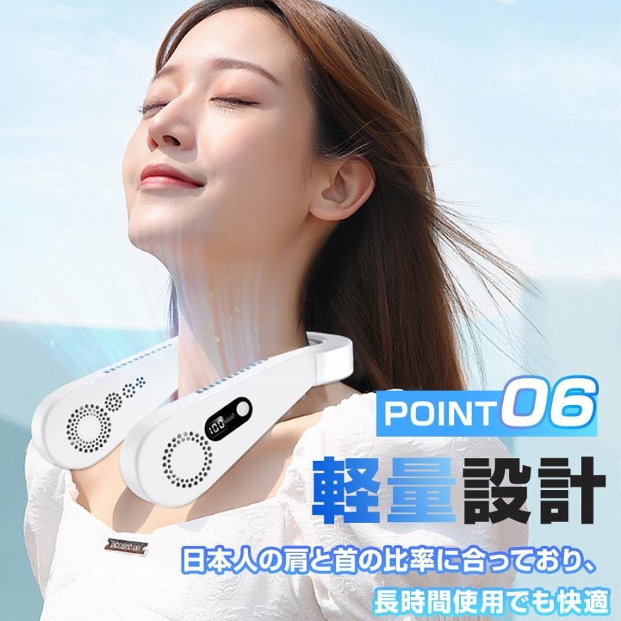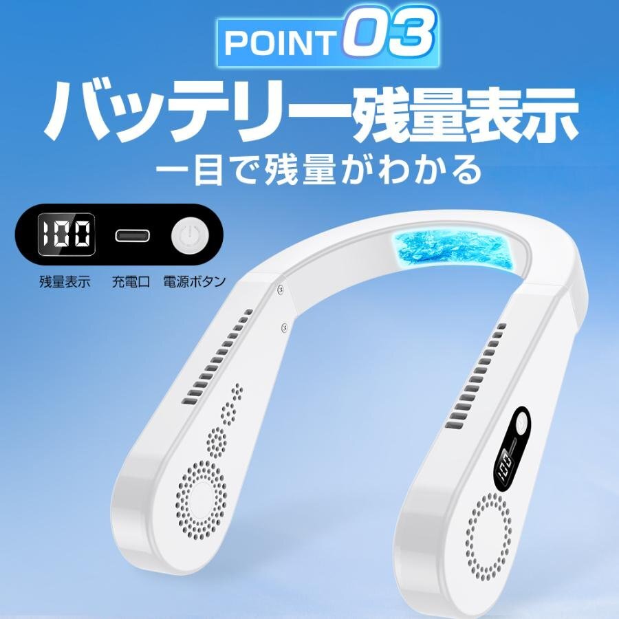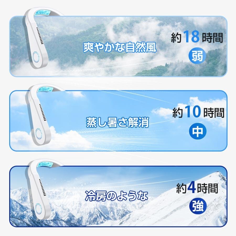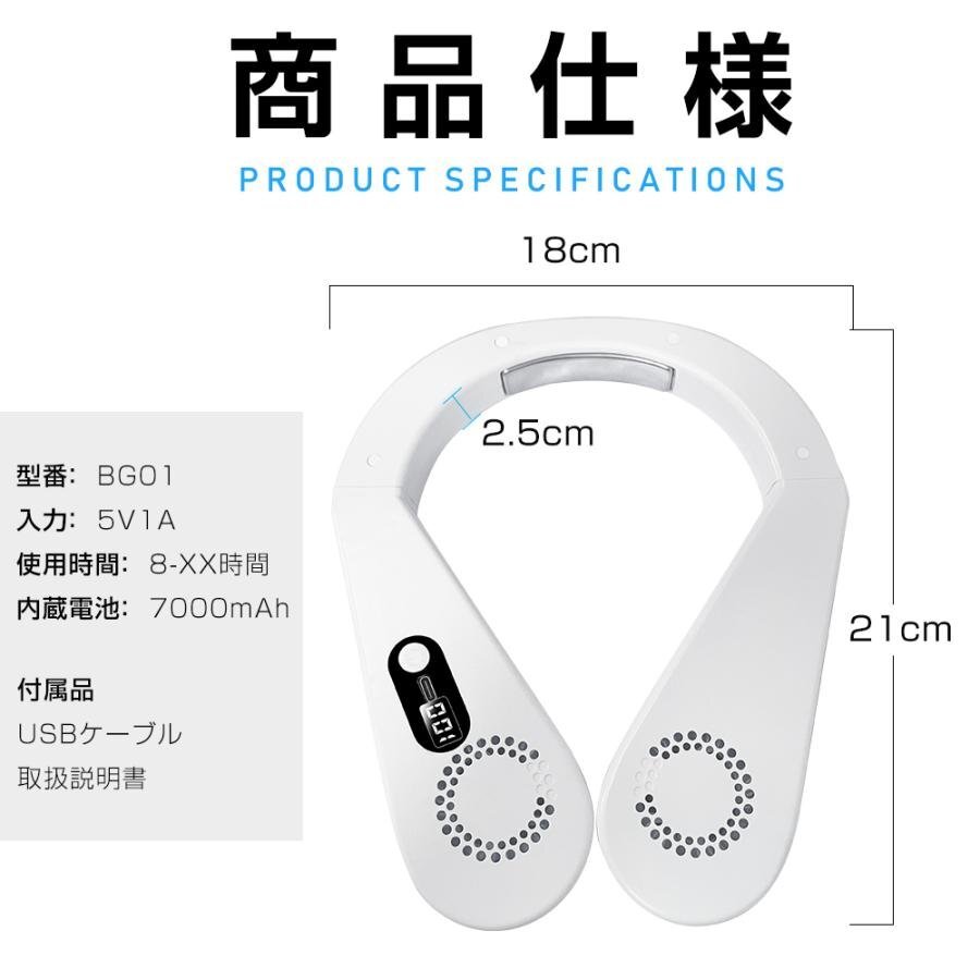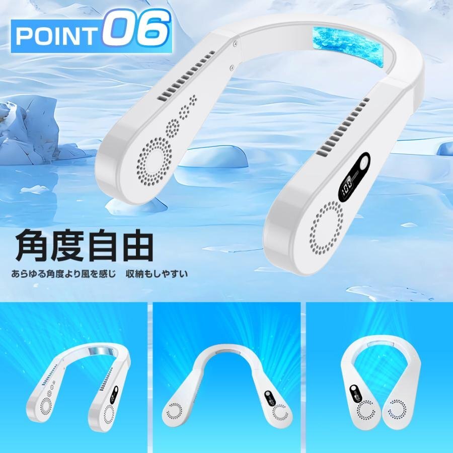 首掛け扇風機 携帯扇風機 ネッククーラー 羽根なし 軽量 7000mAh大容量 冷却プレート付 静音 接触冷感 3段階調整LED表示 夏ギフトホワイト
