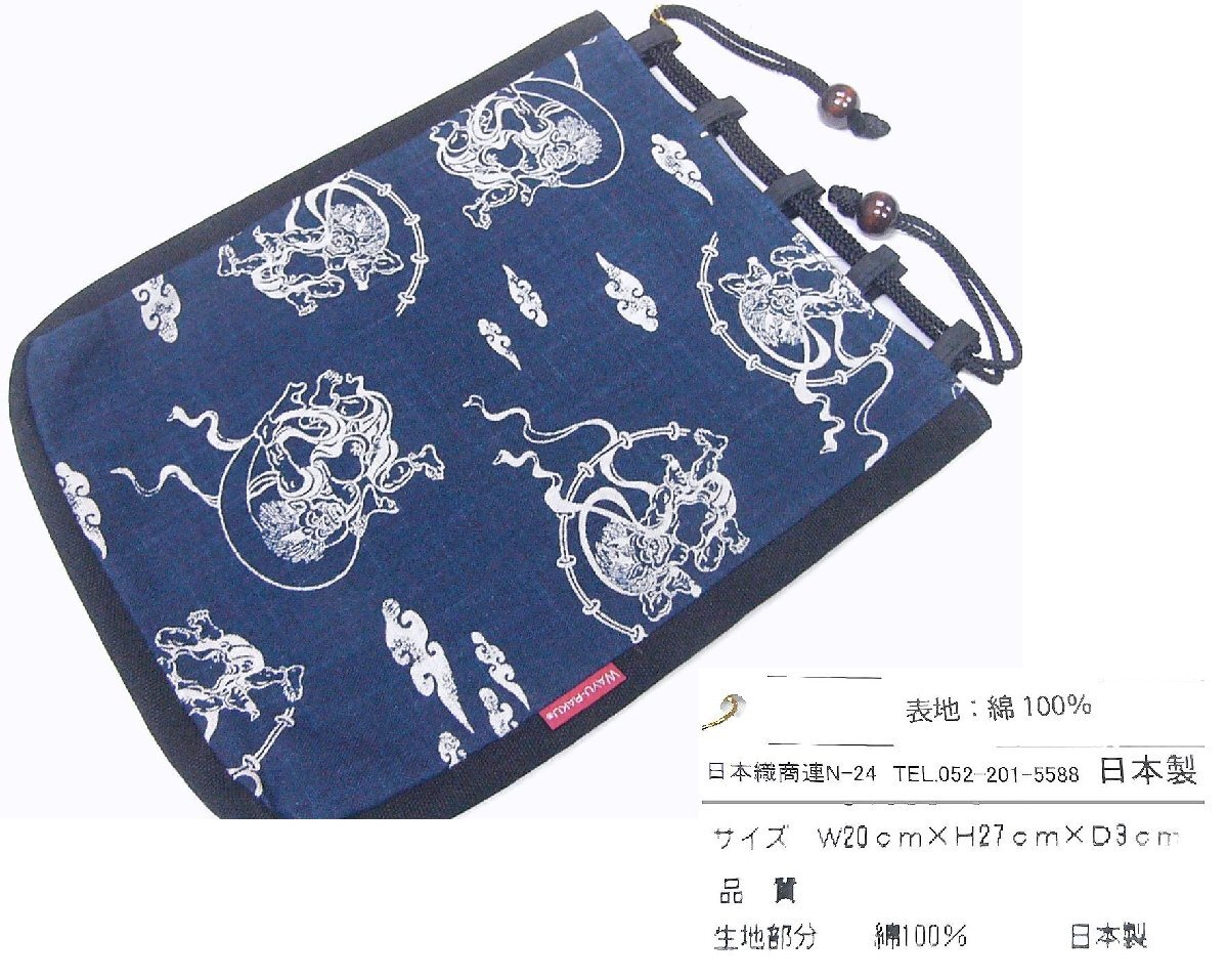 当店の休日は不定期ですから自己紹介に記載させていただきますのでご覧いただきますようお願いいたします。 ○o。 商品詳細 。o○ 日本製のマチのついているの巾着・信玄袋で未使用品です。 表生地は綿100%の生地です。 表生地は少しくすんだ濃紺色地で風神や雷神の模様です。 裏地は黒色の無地になります。 お出かけに風神・雷神模様の小紋の生地を使用した信玄袋はいかがですか。 お気に召しましたら入札をお願いいたします。 ○o。 商品の状態 詳細 。o○ タテ・ヨコ 約27.5cm・20cm 巾 約3cm 卸問屋さんの見切りのお品になりますが古いお品ではないように思いました。 検品いたしまして使用に差し障る目立つ難は無いようでした。 お品により柄の位置が違いますことをご了承願います。 ○o。 コメント 。o○ 卸し問屋さんの在庫のお品をわけあり品として見切っていただきましたアウトレットのお品になります。 見切り品ですから仕上がったばかりの新品とは違いますのでご了承願います。 当店にて検品いたしまして上記以外に使用に差し障る難は見つかりませんでした。 それでも見つけにくいごく小さな難などがみつかるかもしれませんけれどアウトレット品で出品いたしておりますのでご容赦願います。 アウトレット品として少しお値打ち価格にて開始させていただきますのでできましたらノークレームにてお願いいたします。 実物に近いお色目を再現できますよう注意して色の調整をいたしおりますが色を忠実に再現することはできません。 撮影時の光線の都合やパソコンのモニターの特性などにより少し違う色に見える場合がございます。 お品に近いお色目に仕上がっておりましたらご容赦願います。 ○o。発送詳細 。o○ 発送方法 クロネコヤマト コンパクト レターパックプラス レターパックライト クリックポスト | |||