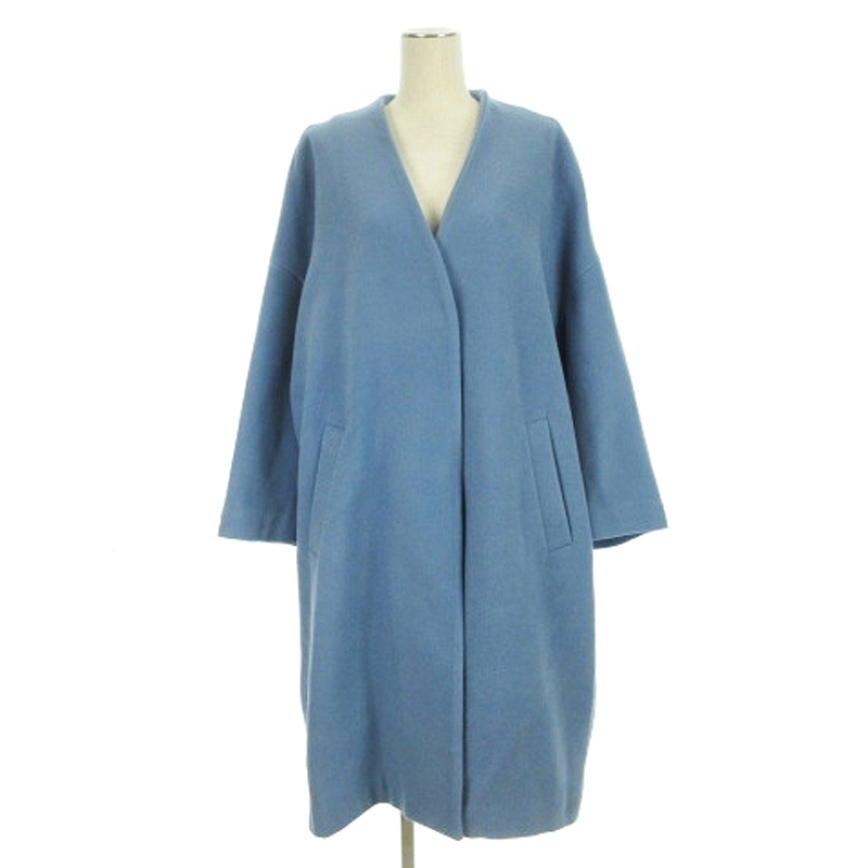 ミラオーウェン Mila Owen ノーカラーコート ウール混 ブルー 250422E アウター レディース