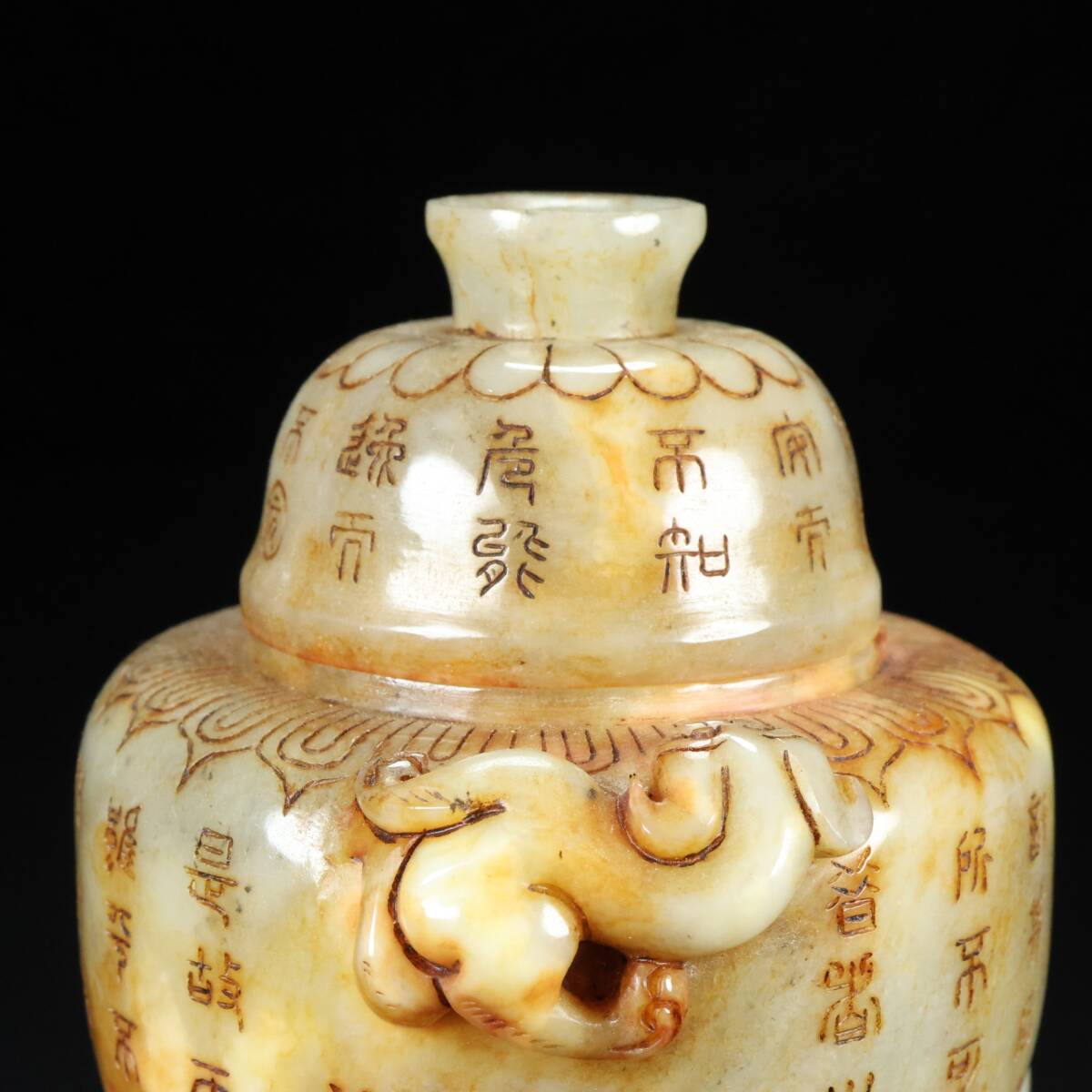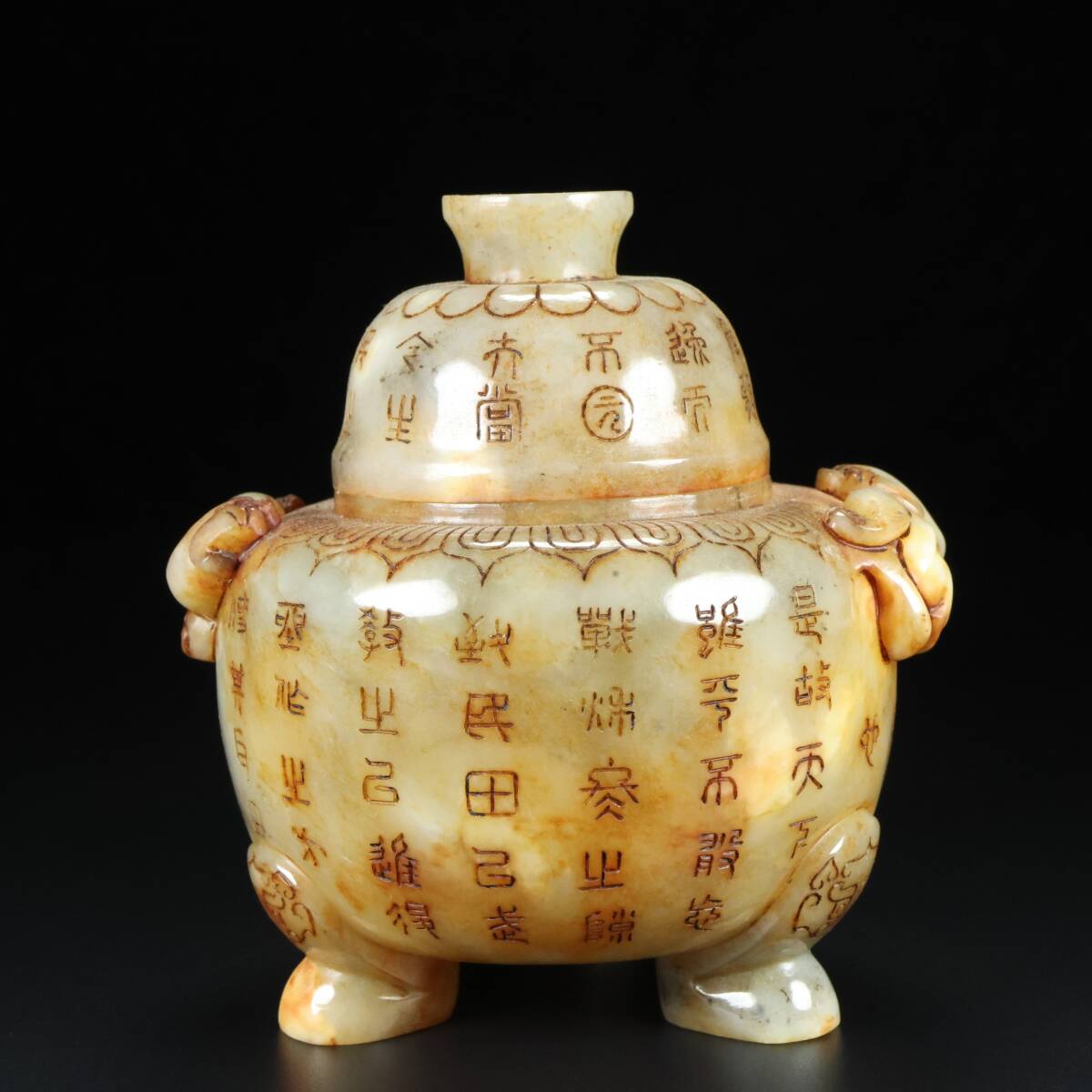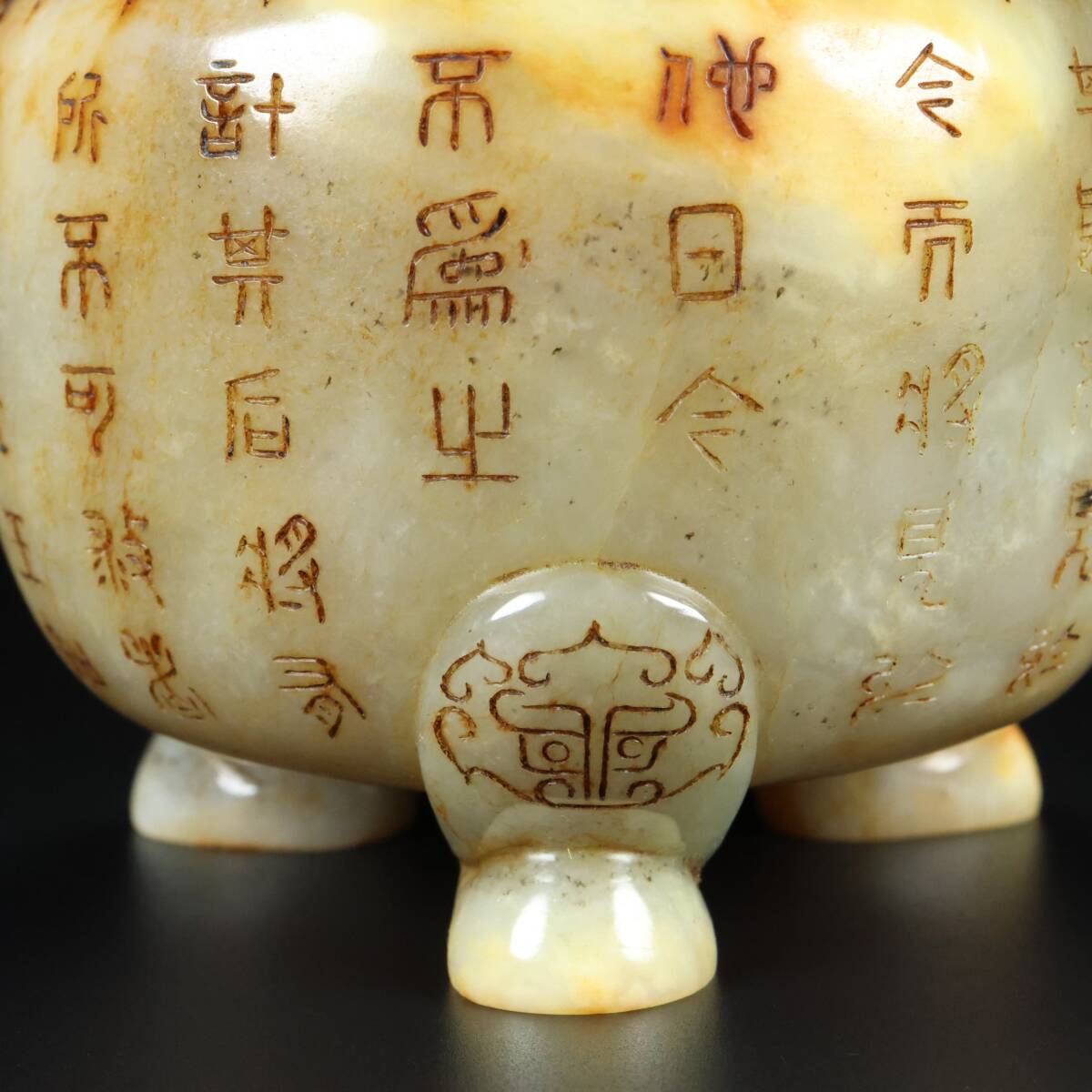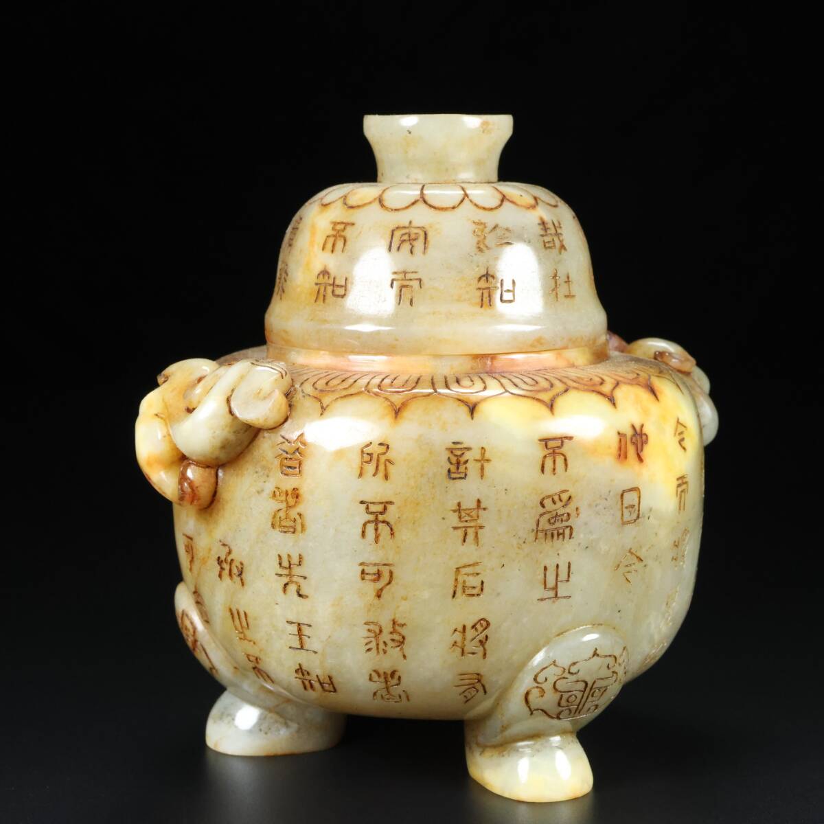 古玉彫 旧蔵 清代 和田老玉 雙獸香爐 細密細工 時代物 古置物 古賞物 中国古美術 中國文玩 S74