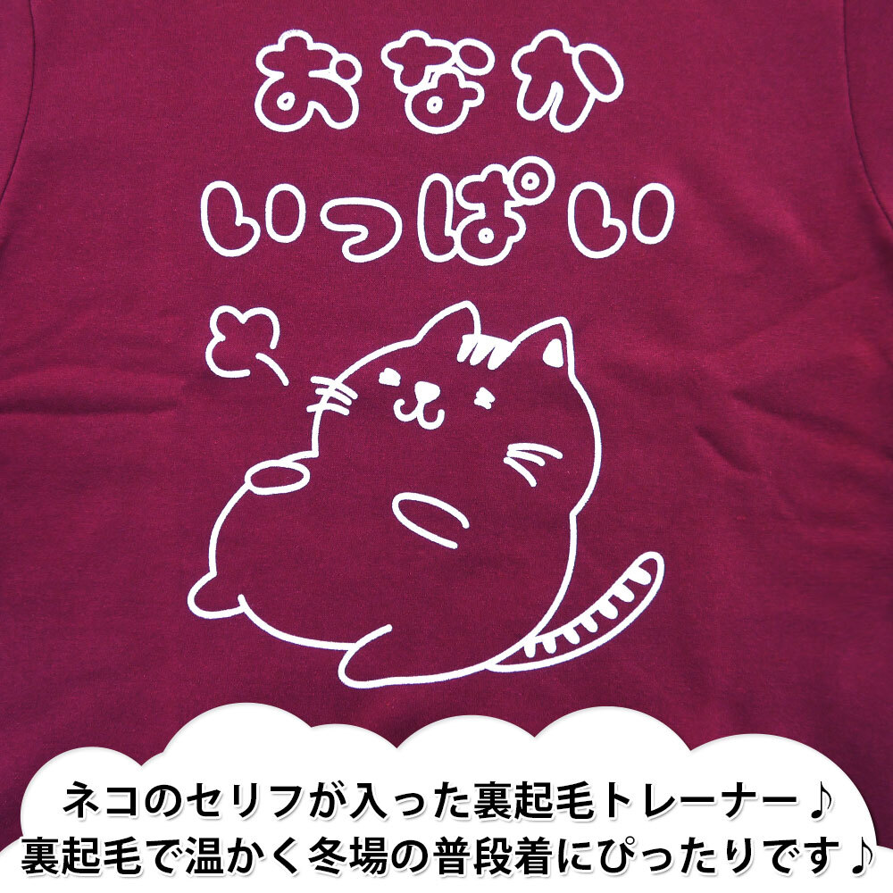 正規店仕入れの新品未使用品です ポリエステル素材で、吸汗速乾に優れます ネコのセリフが入った裏起毛トレーナー 裏起毛で温かく冬場の普段着にぴったりです |