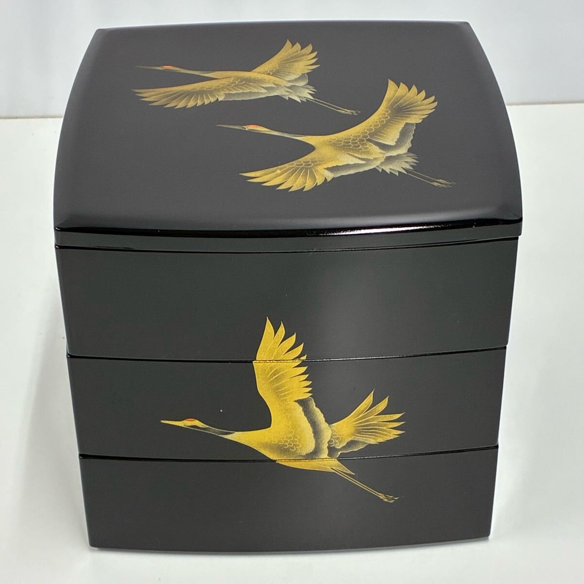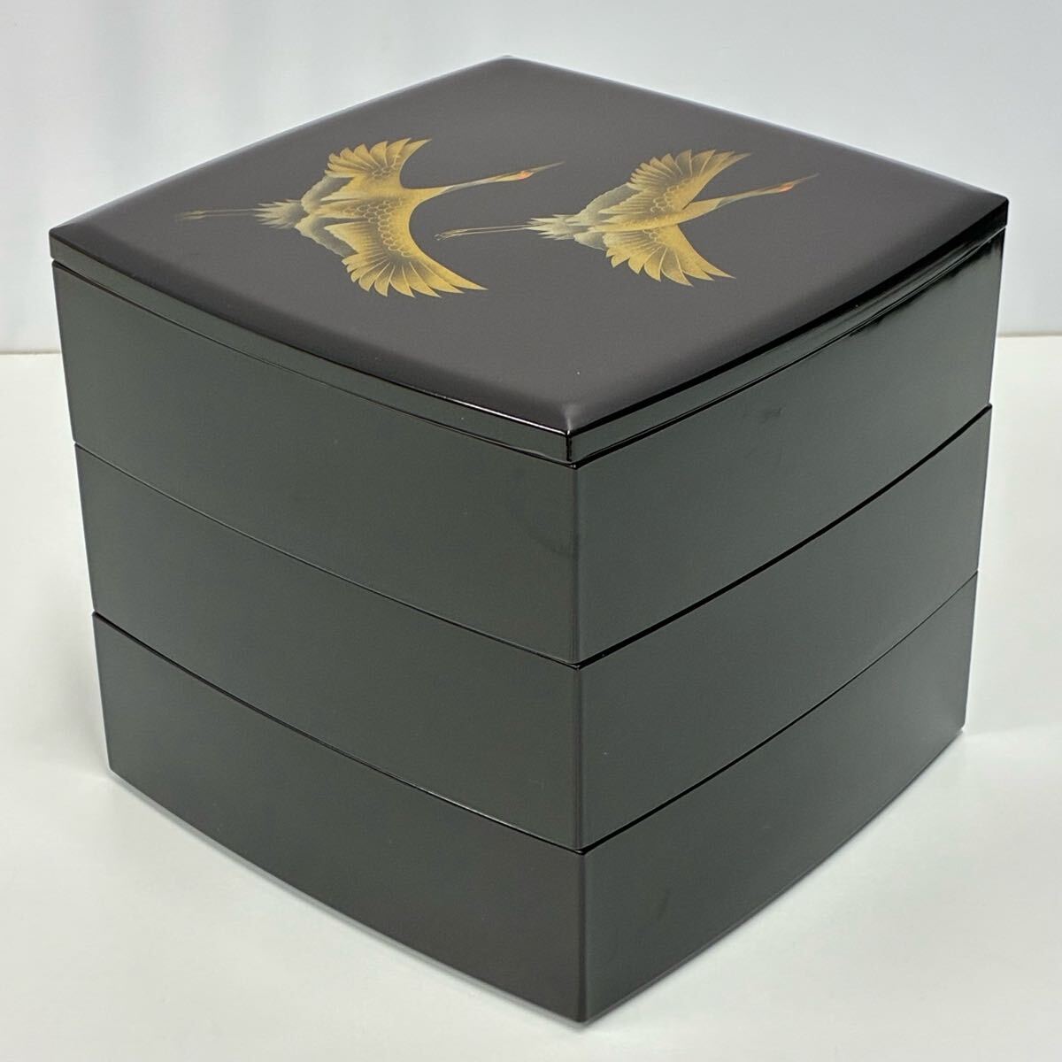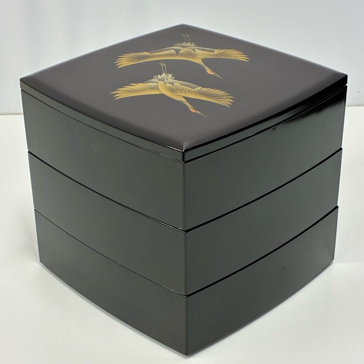 | 重箱 胴張三段重 翔鶴 高さ約17.5cm 幅約19.6×19.6cm |