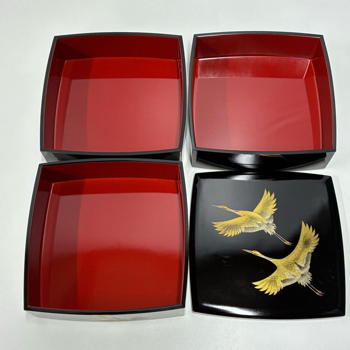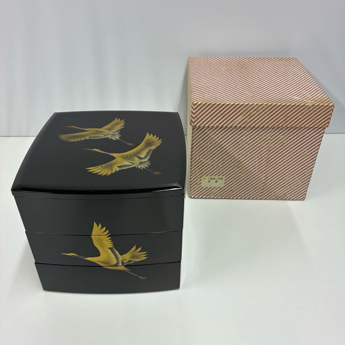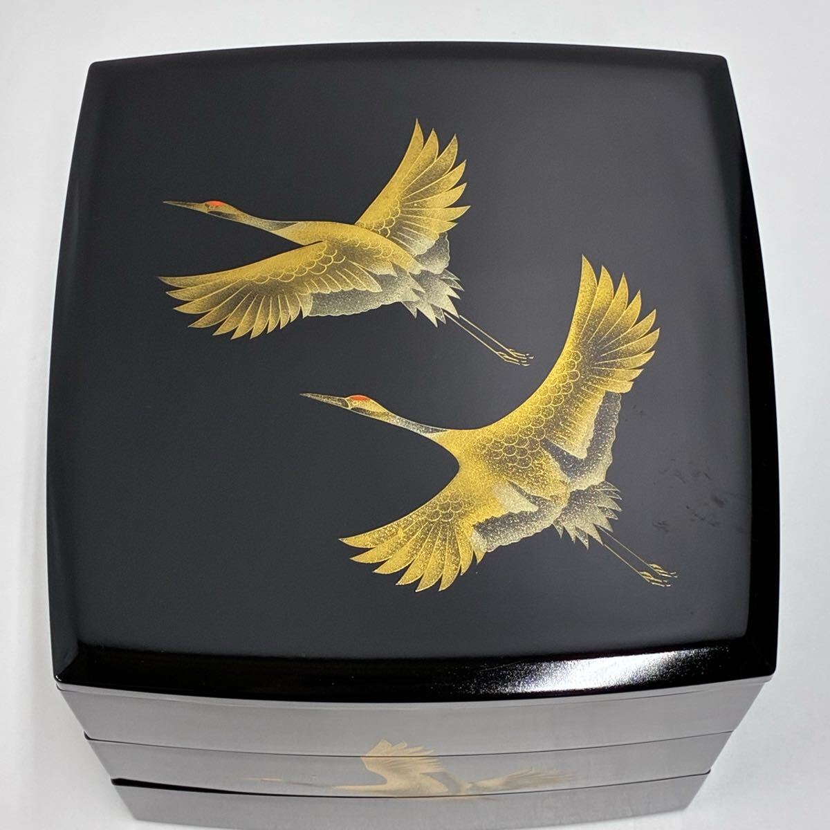 | 重箱 胴張三段重 翔鶴 高さ約17.5cm 幅約19.6×19.6cm |