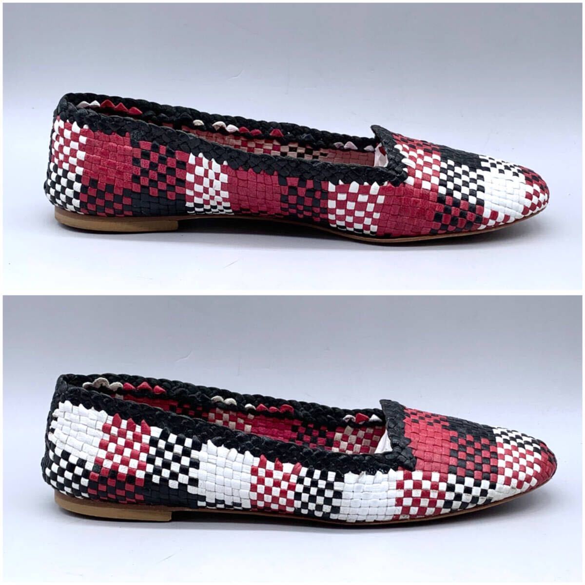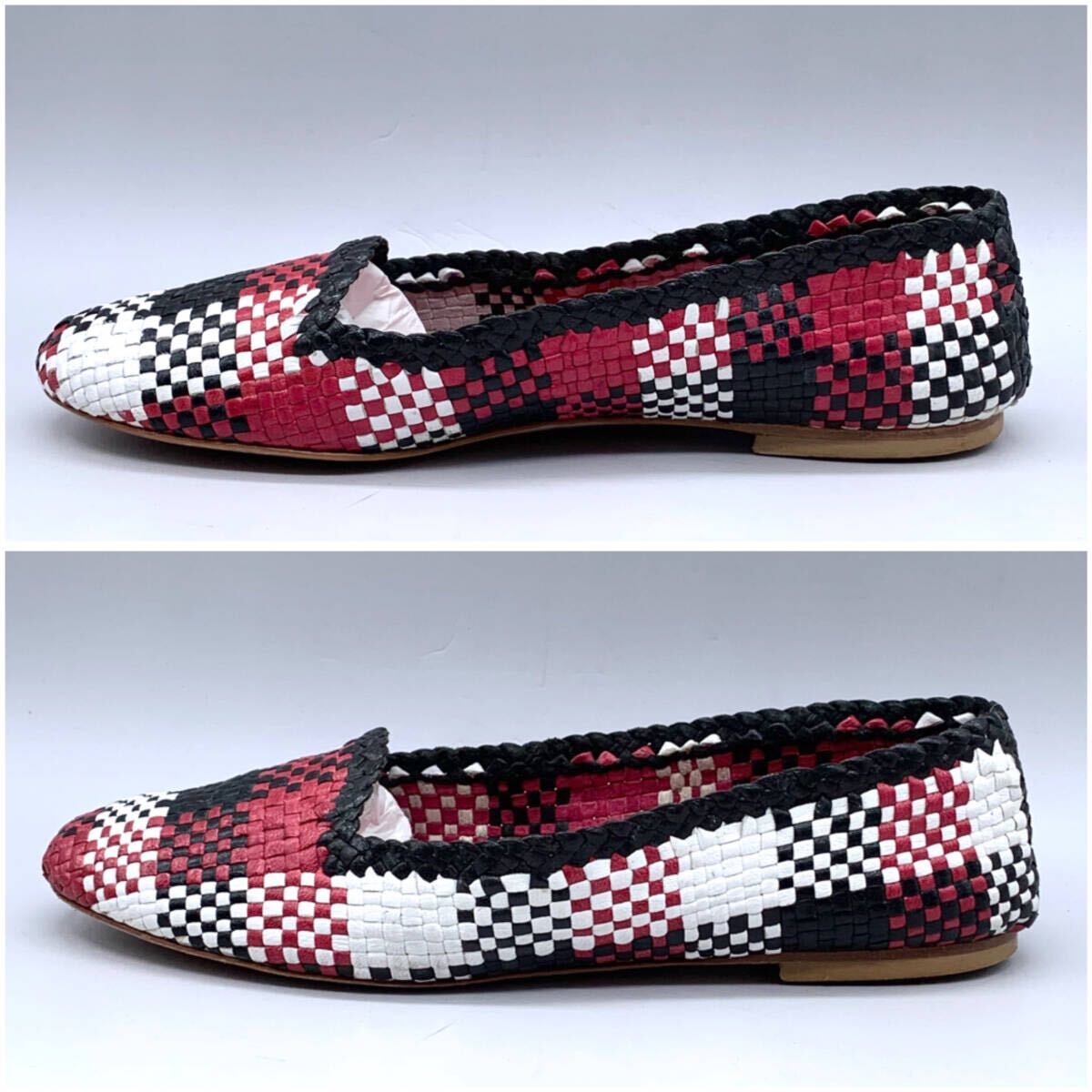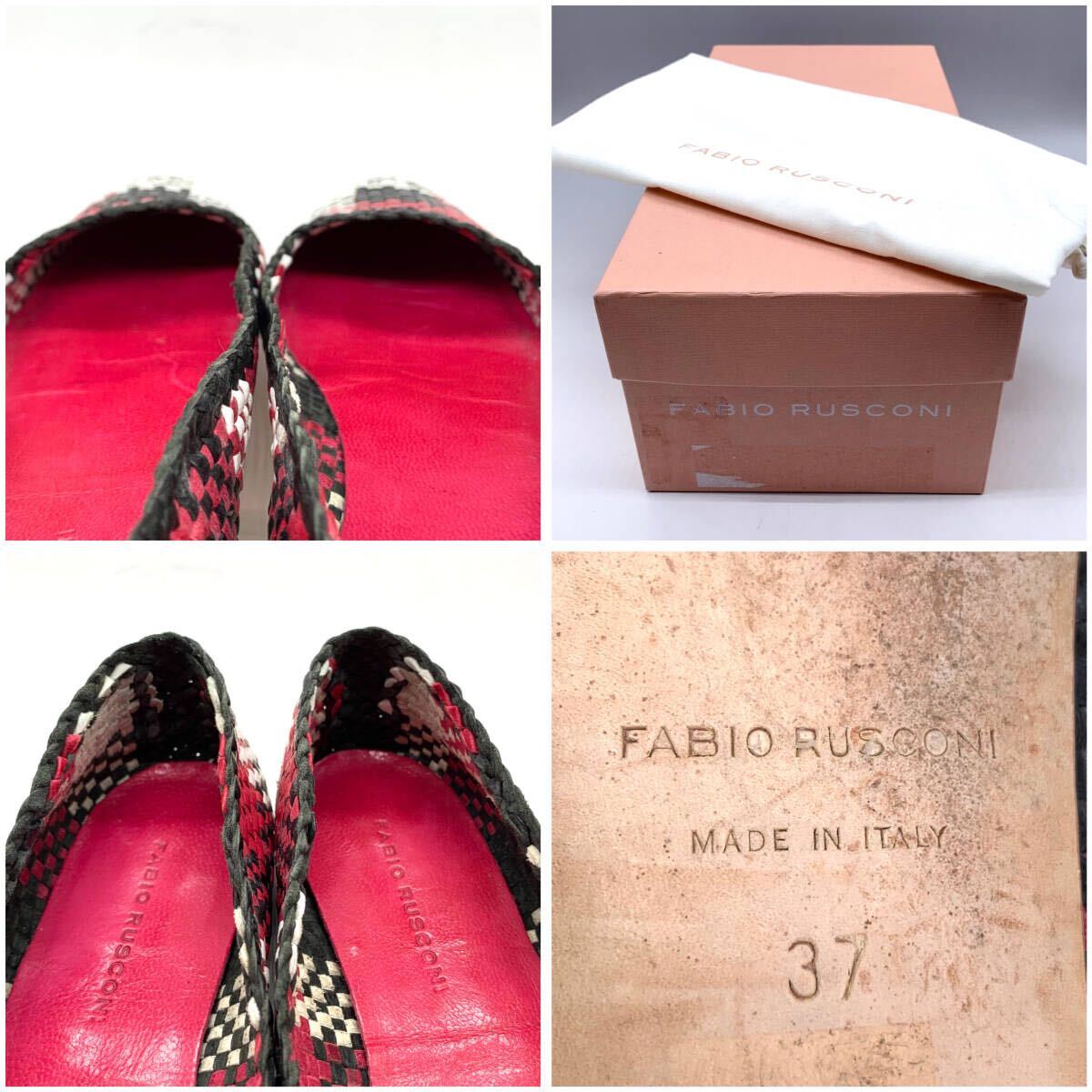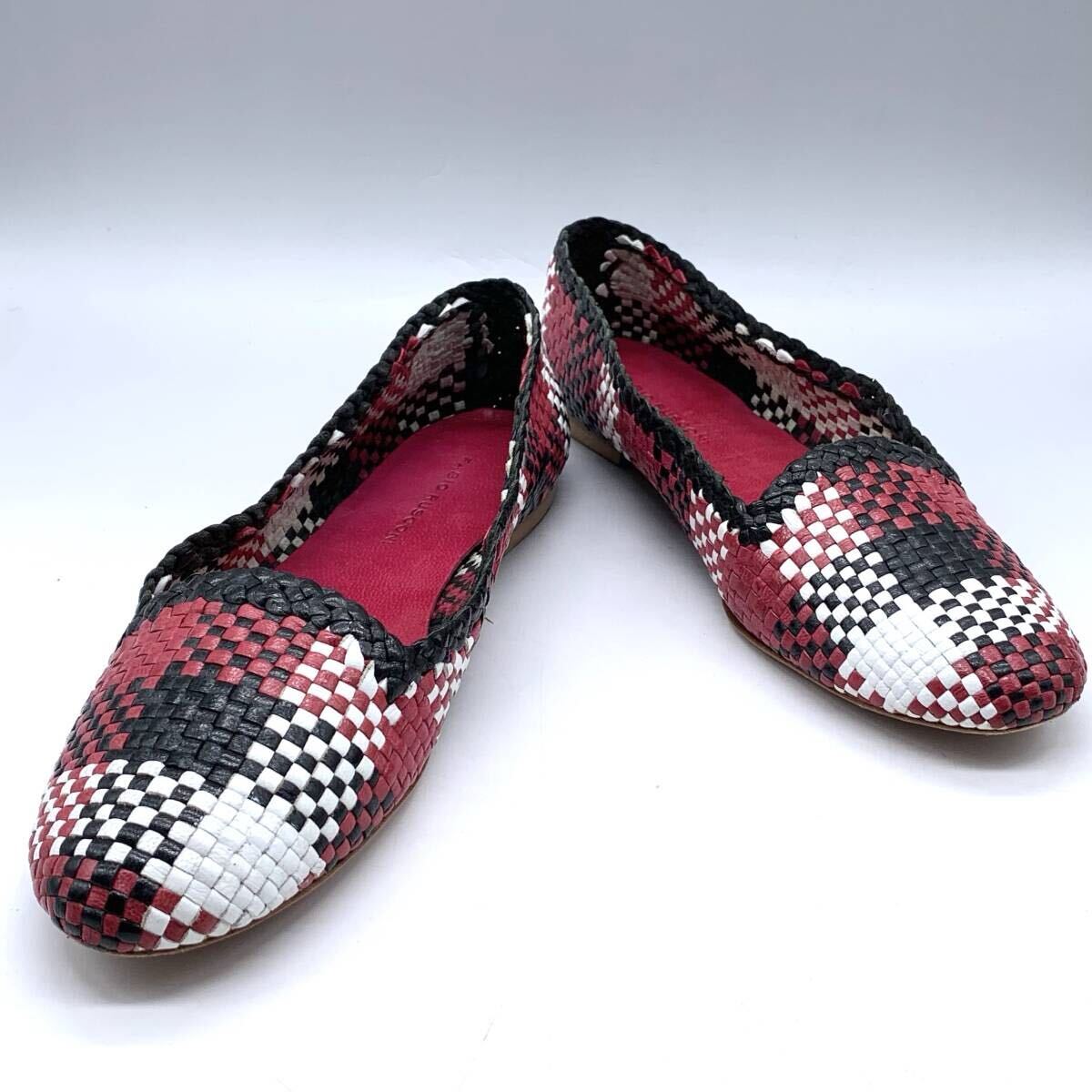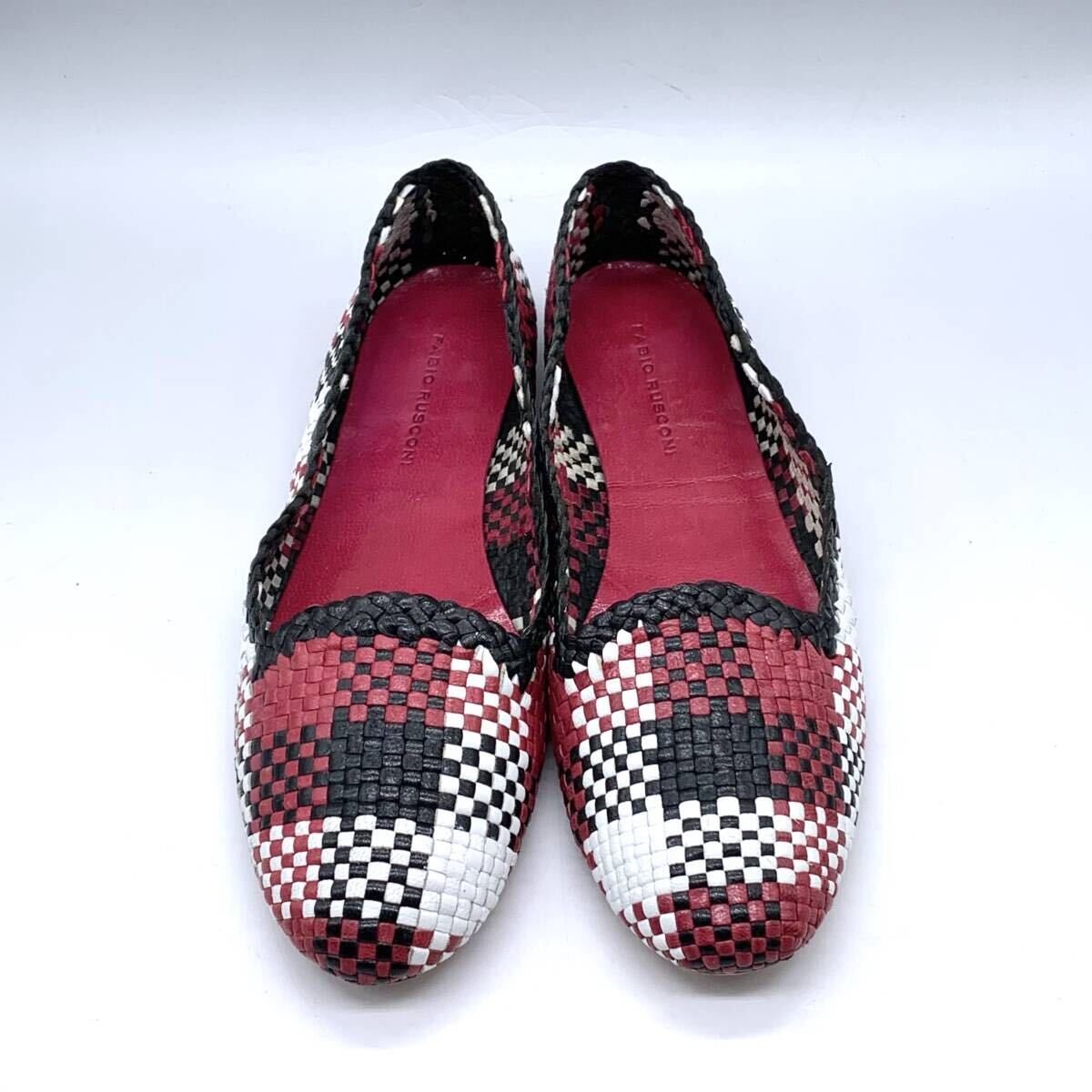レディース Fabio Rusconi [ファビオルスコーニ] フラットシューズ ローファー スリッポン 編み込み チェック レザー 37 23.5cm イタリア製