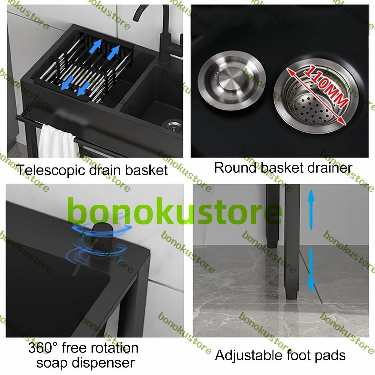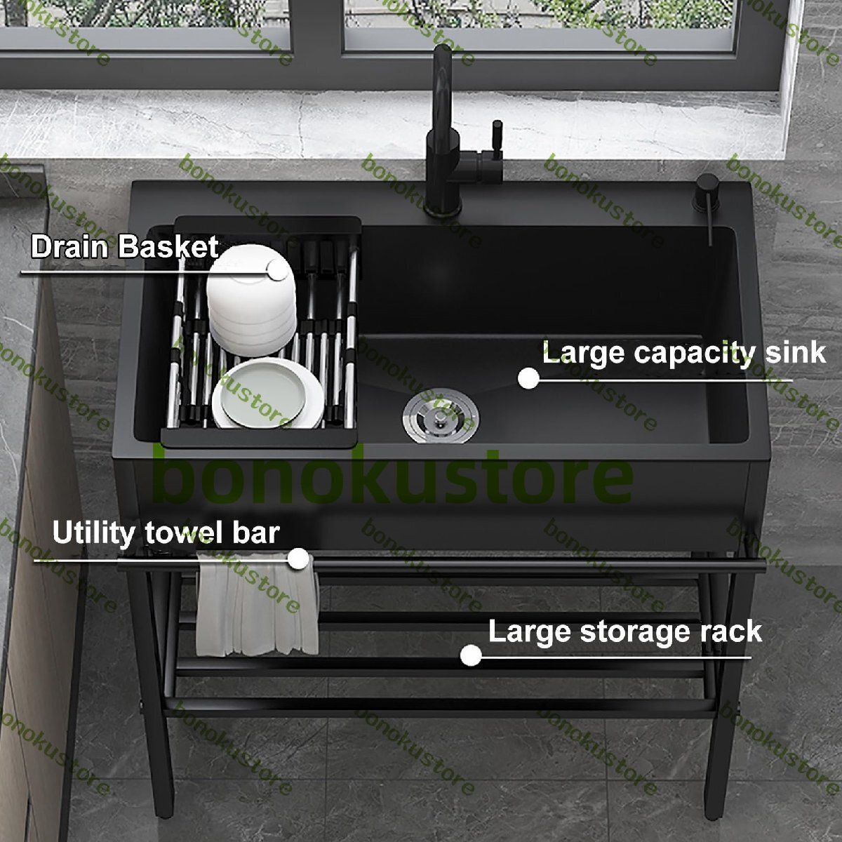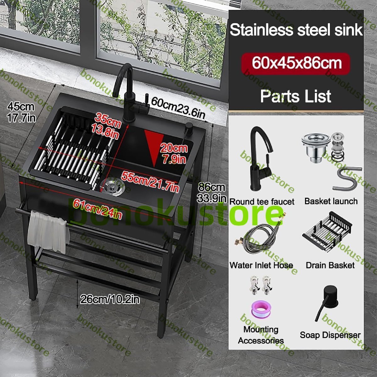 屋外流し台ステンレス 業務用シンク 外よう流し台 多機能シンク 収納棚と蛇口付き 自立型シンク スタンド付きポータブル手洗いステーション シングルボウルキッチンシンク 自立型シンク 洗面所 飲食店 家庭 工場 農園 厨房 BBQ アウトドアに 対応 (Size : 60x45x86cm)