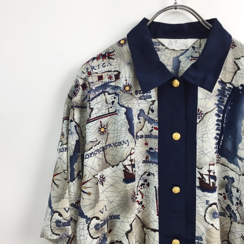 商品: デザインシャツ★153 Collection 半袖シャツ 総柄 金ボタン マルチカラー サイズ不明 レディース