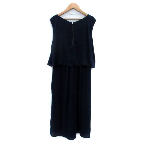 アロー オールインワン コンビネゾン ラウンドネック ノースリーブ ガウチョパンツ ワイドパンツ 七分丈 F 紺 ネイビー レディース