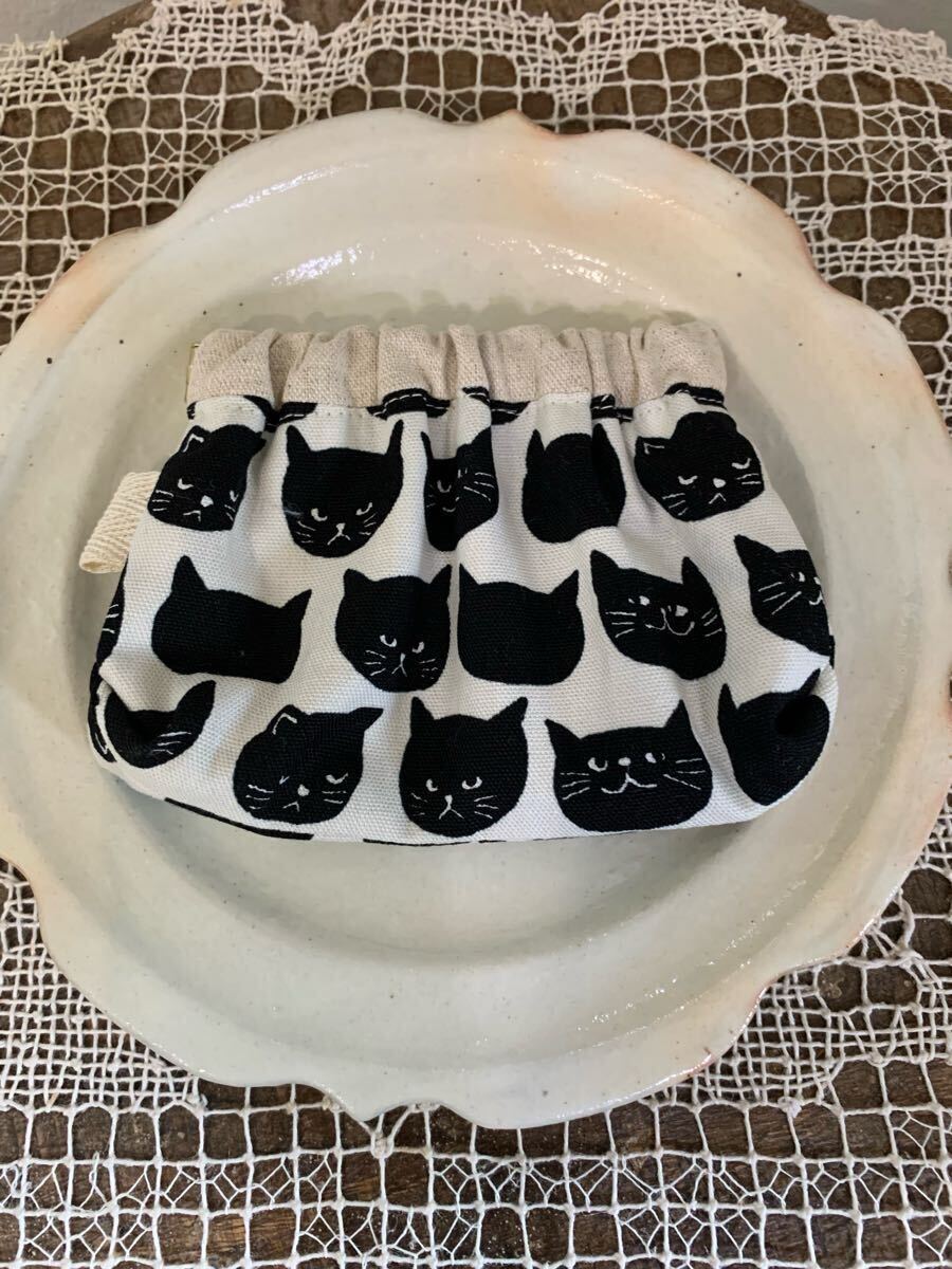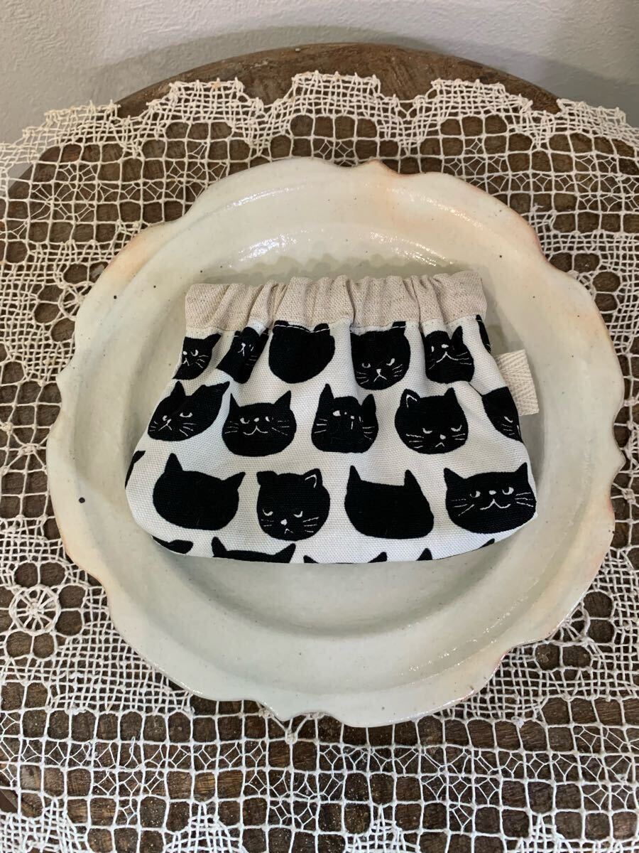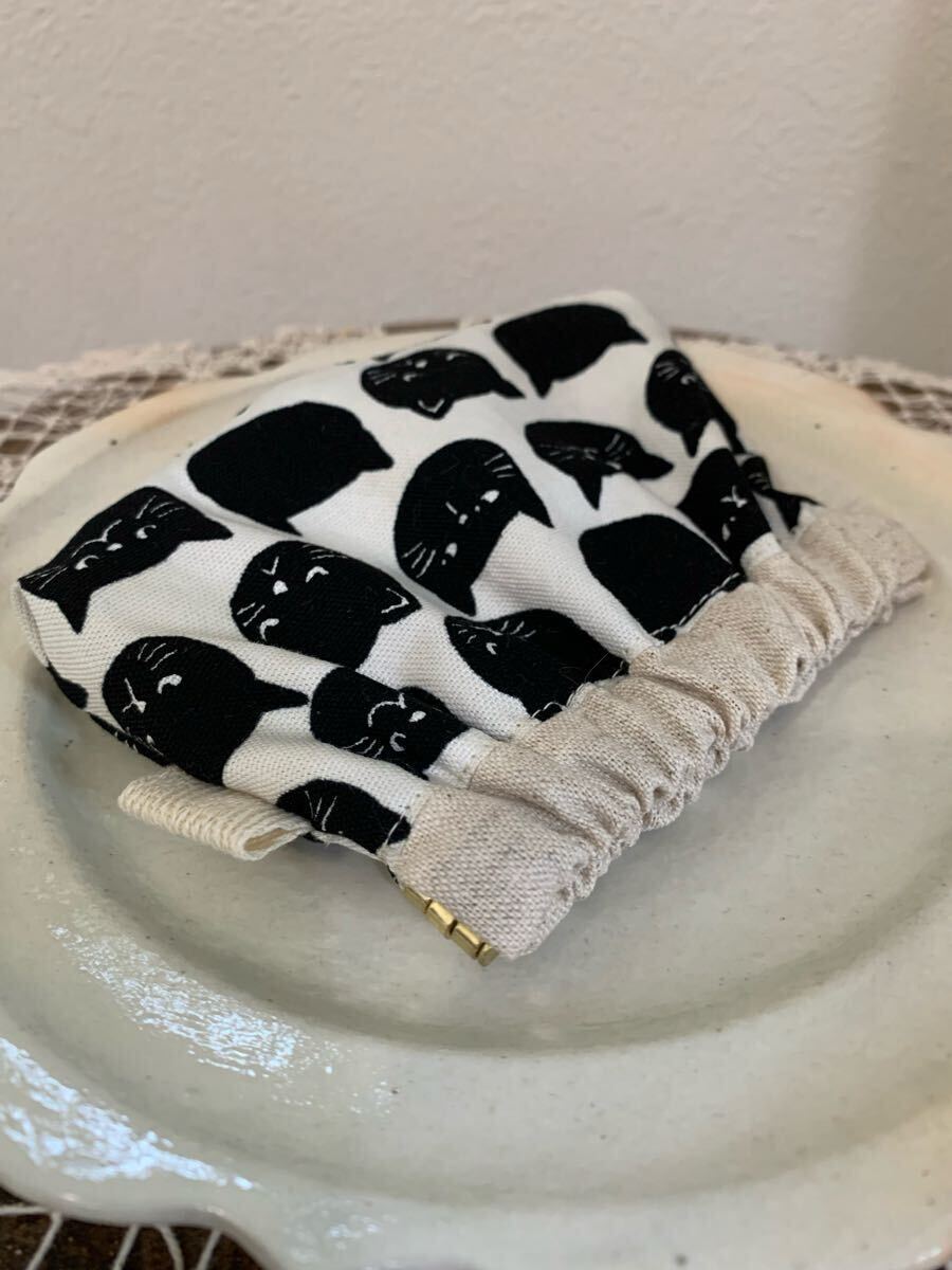 ハンドメイド  バネポーチ ポーチ 小物入れ 猫柄 白黒 猫