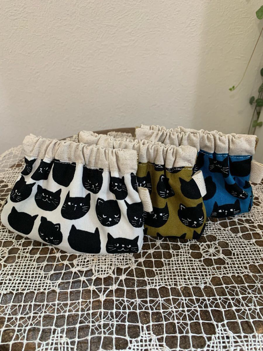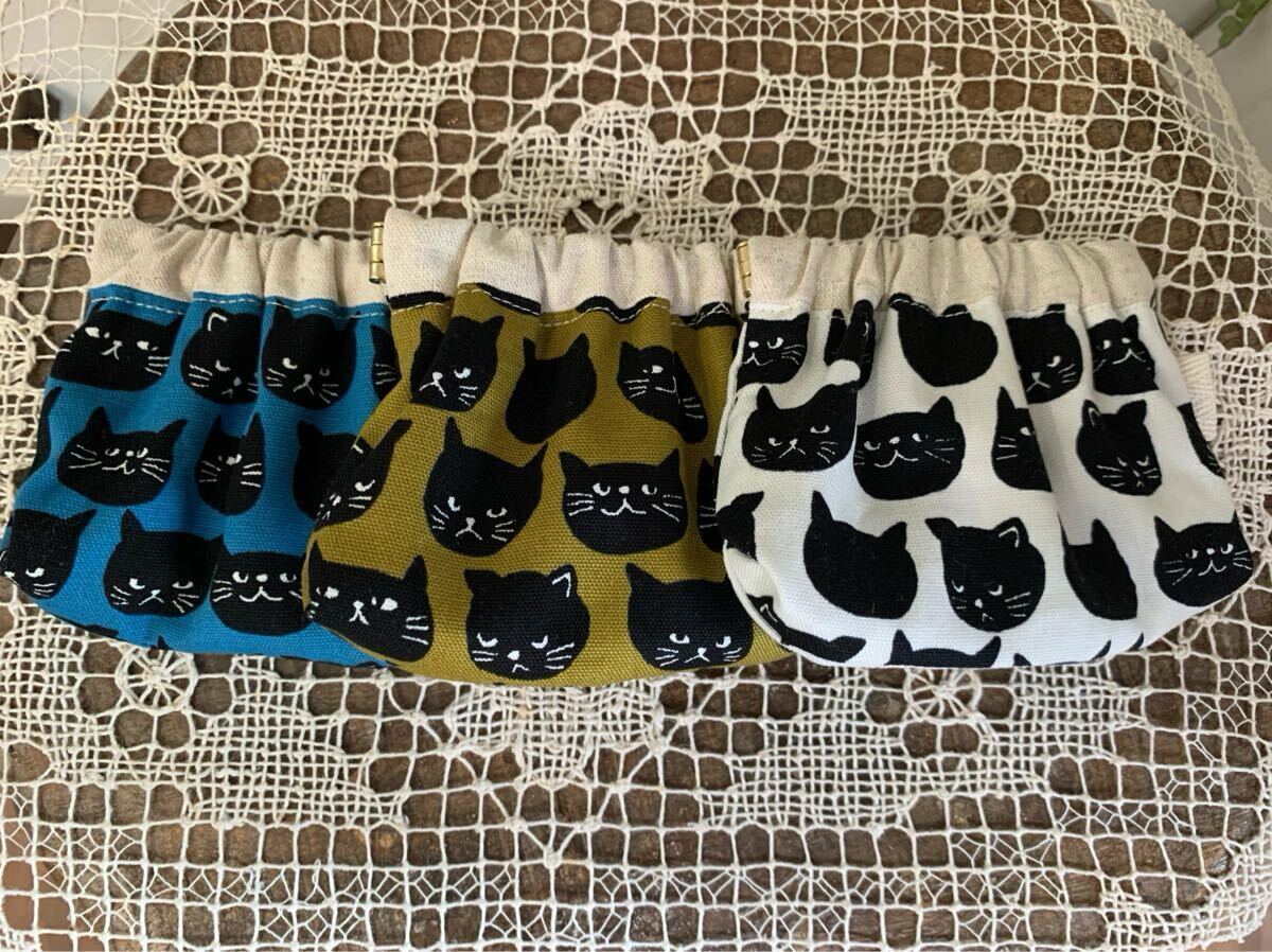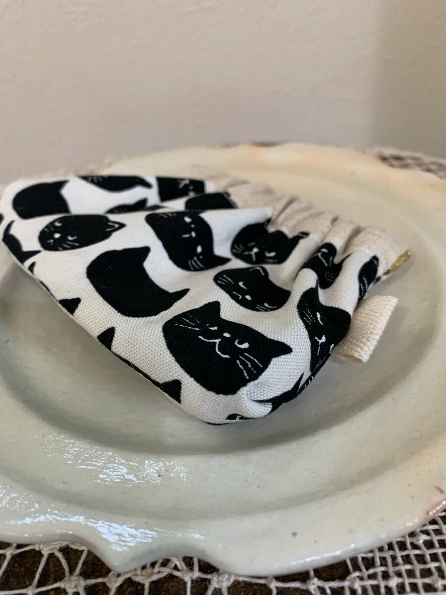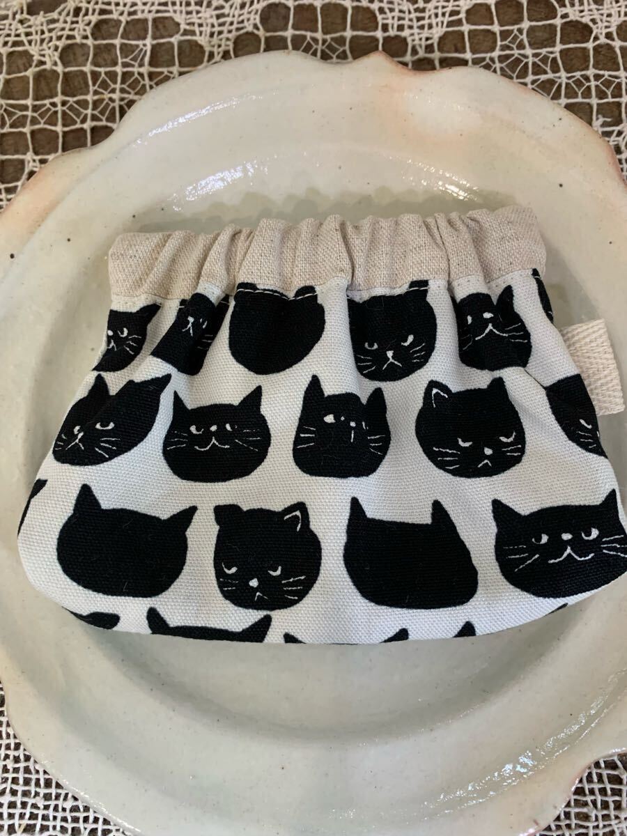 ハンドメイド  バネポーチ ポーチ 小物入れ 猫柄 白黒 猫