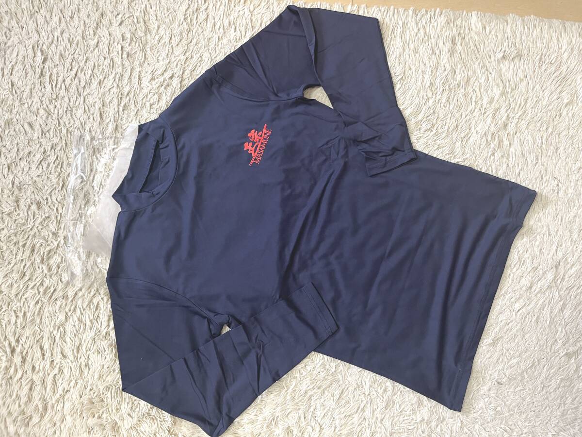 メンズFreeサイズ:カモ井加工紙【正宗】長袖ストレッチシャツ/薄手:ネイビー