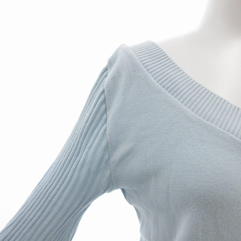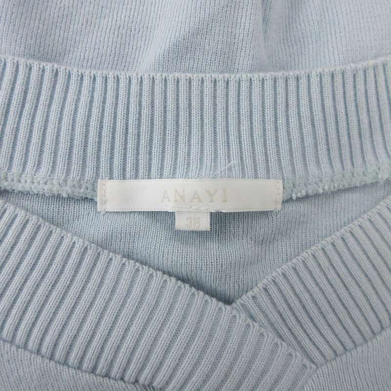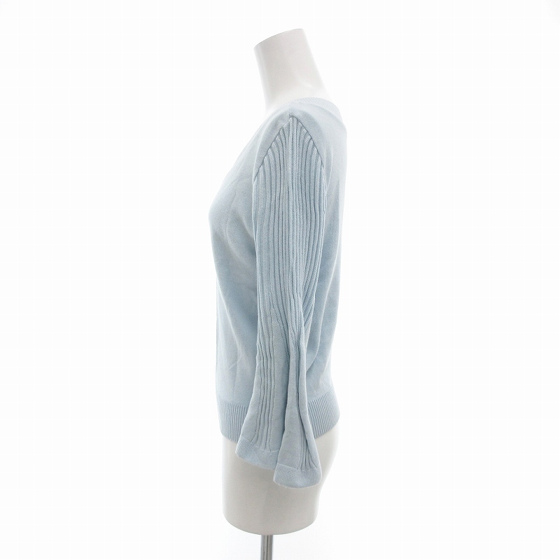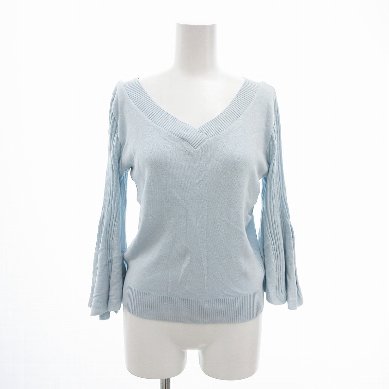 アナイ ANAYI ニット カットソー Vネック 切替 リブ フレアスリーブ 長袖 38 水色 ライトブルー /VU□ 0416 レディース