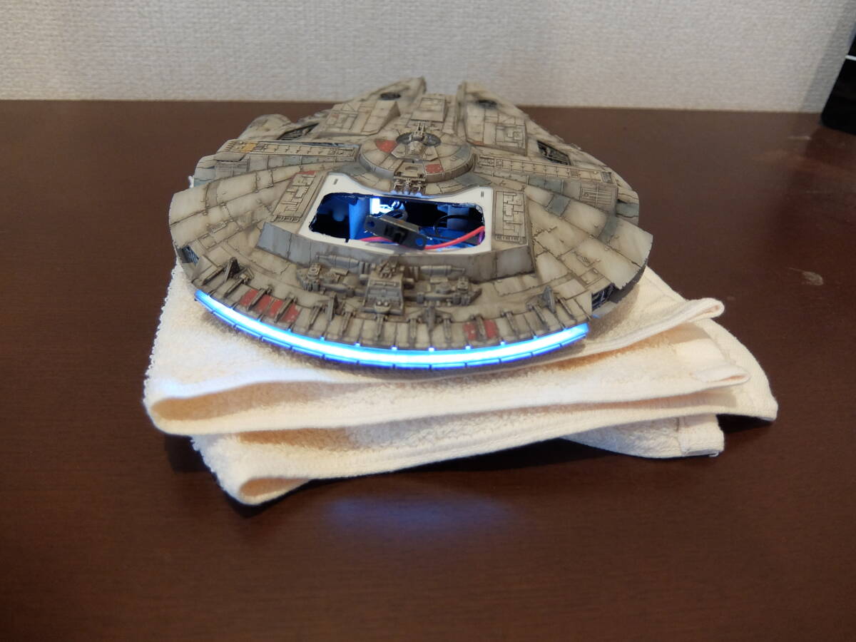 BANDAI バンダイ 1/144scale『ミレニアム・ファルコン(フォースの覚醒)』LED発光/改修塗装済完成品<箱なし>
