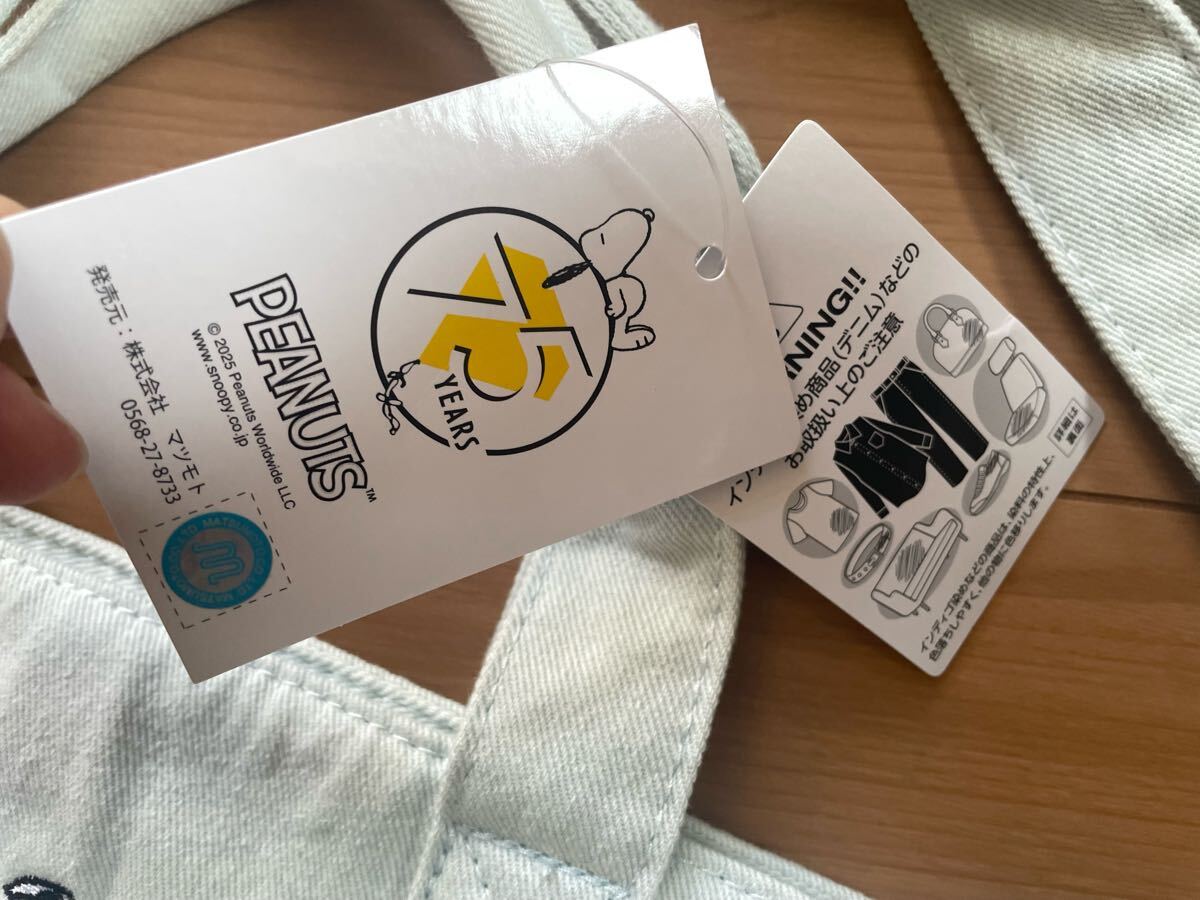 75周年デザインのスヌーピーの刺繍がかわいく、しっかりした素材で収納力バツグンのお品ですよ★